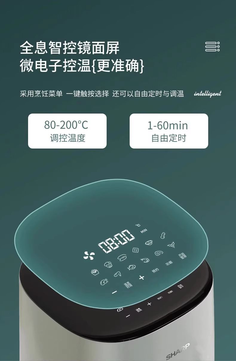 厨艺进阶法宝~ 夏普空气炸锅5L 全息智控镜面屏 微电子控温更精确! 12项智能菜单 轻轻一点 小白也能做大餐~