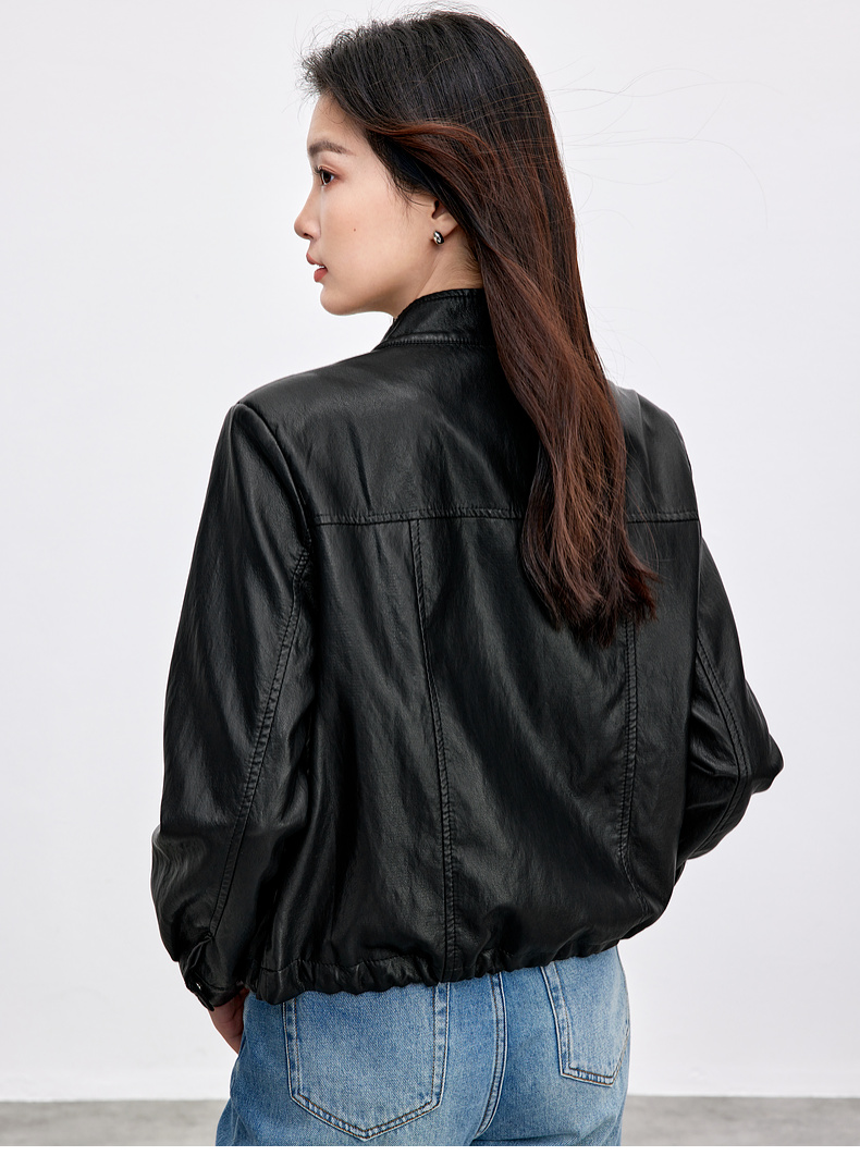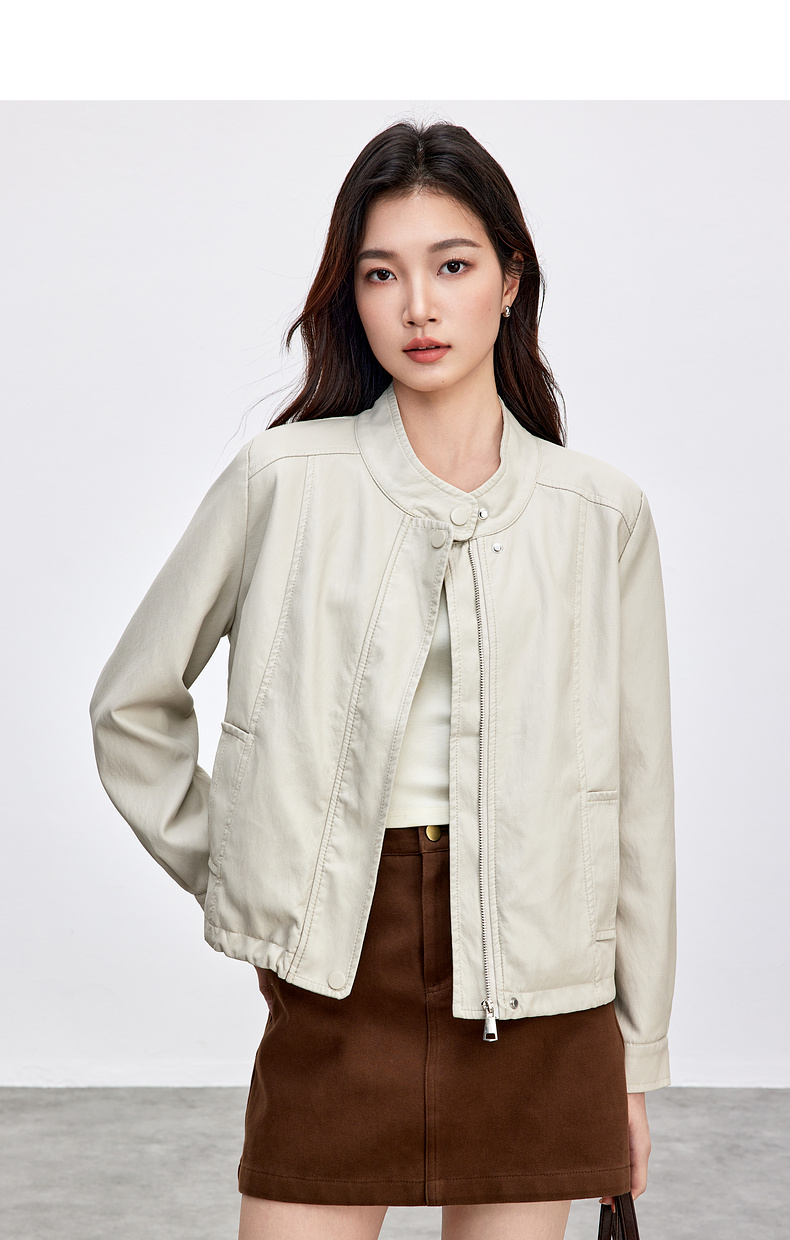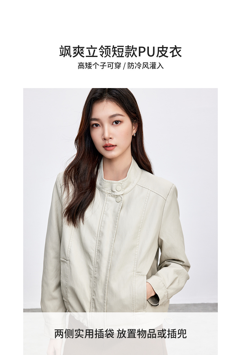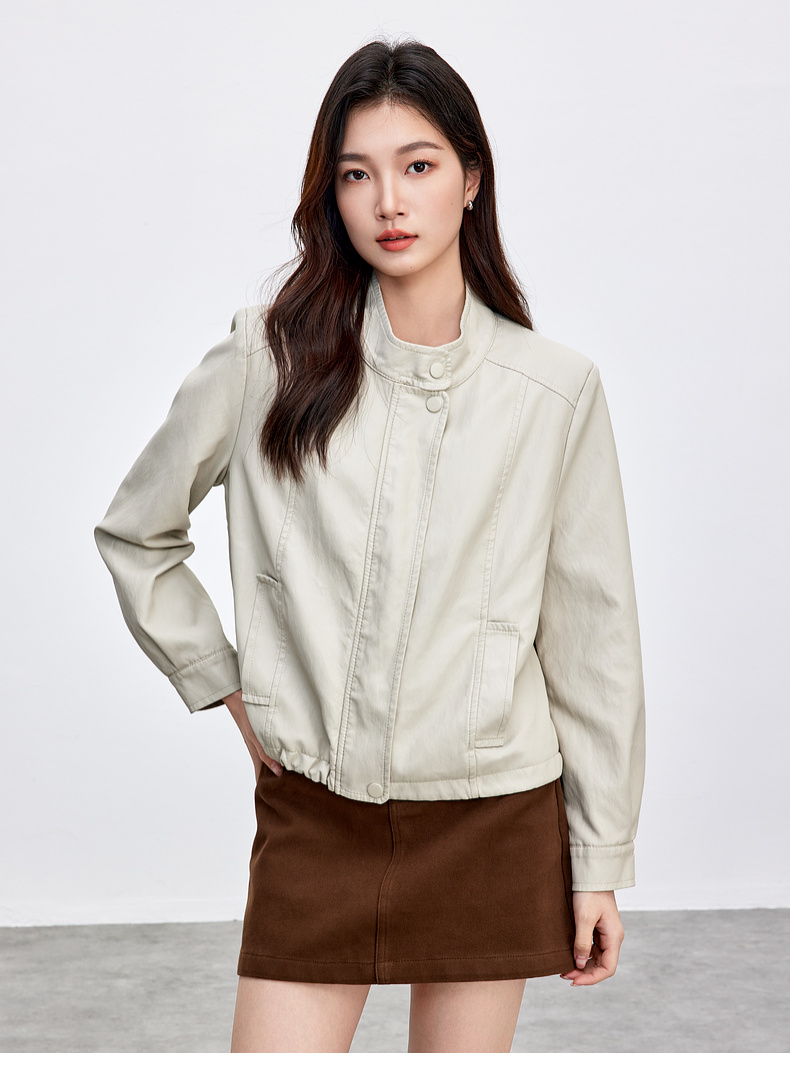 【内购】小个子都市通勤简约立领松紧抽绳垫肩显瘦短款外套-W51G80160