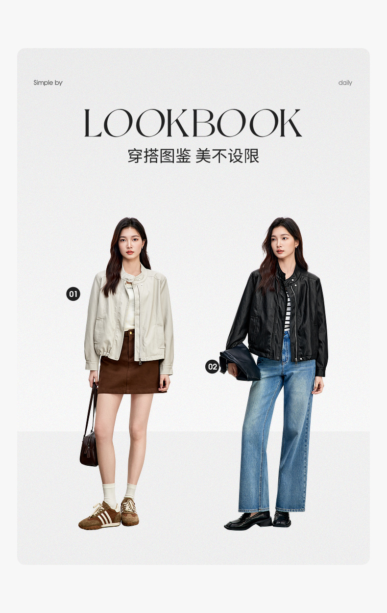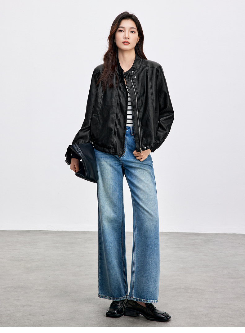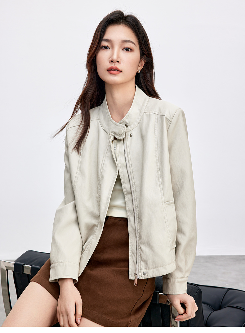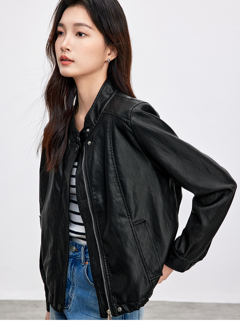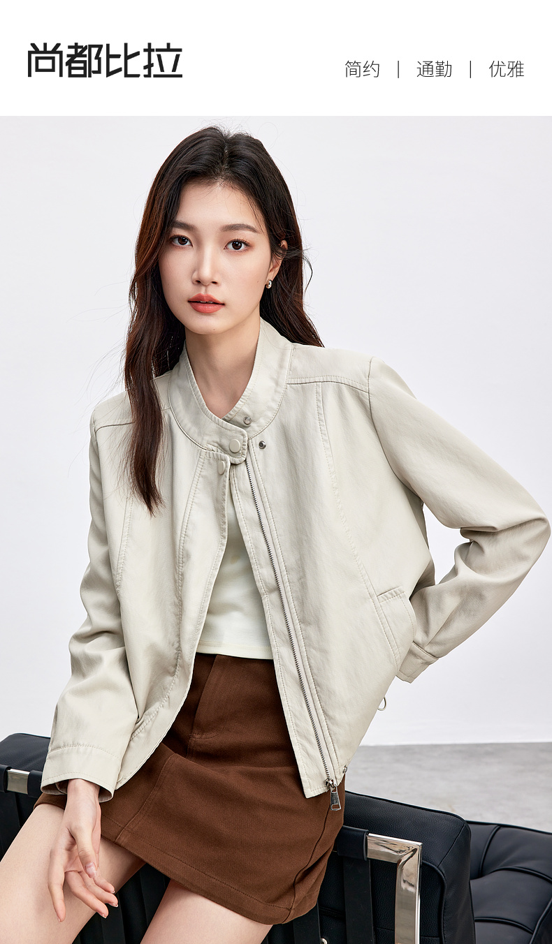 【内购】小个子都市通勤简约立领松紧抽绳垫肩显瘦短款外套-W51G80160