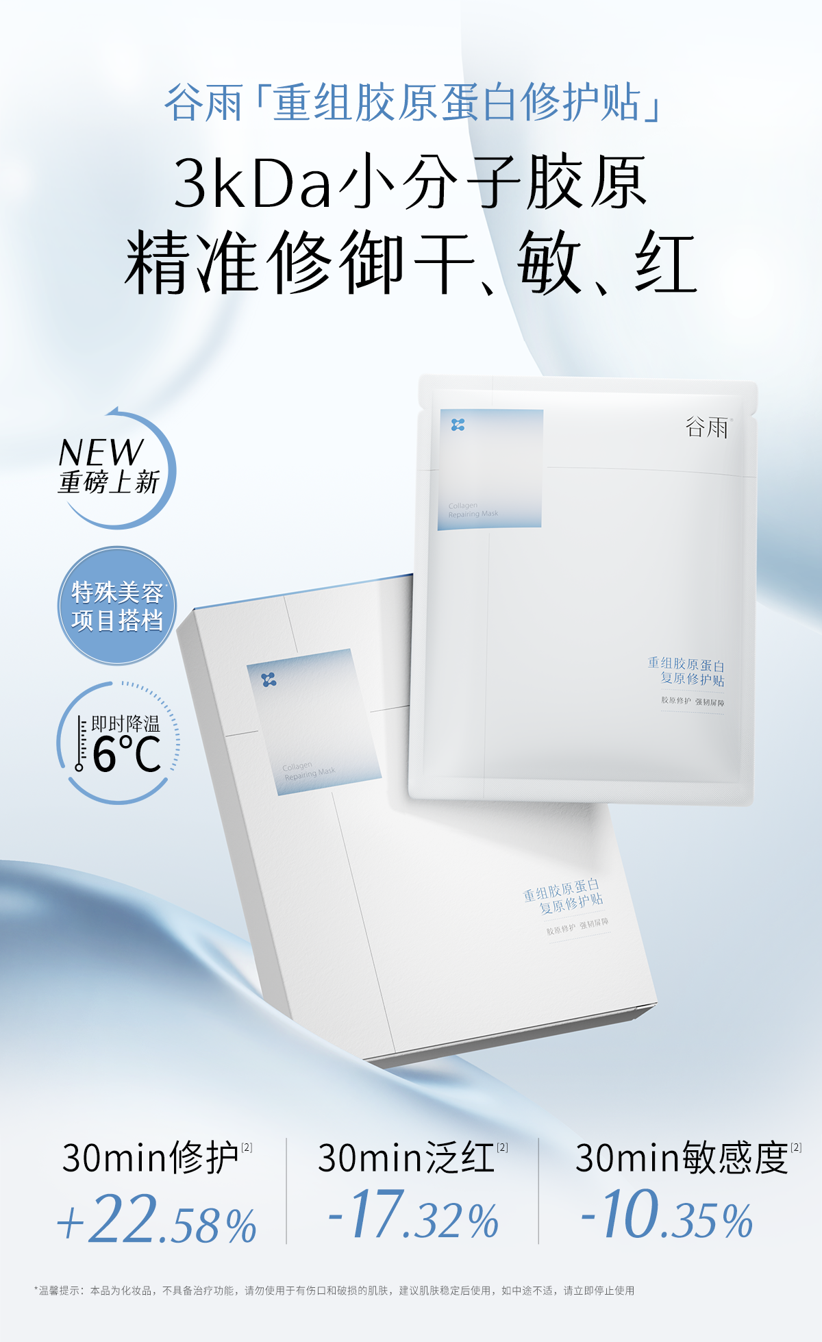 【双十二狂欢节】【重磅星品】谷雨重组胶原蛋白复原修护贴盒装 F315 3kDa小分子胶原 精准修御干·敏·红