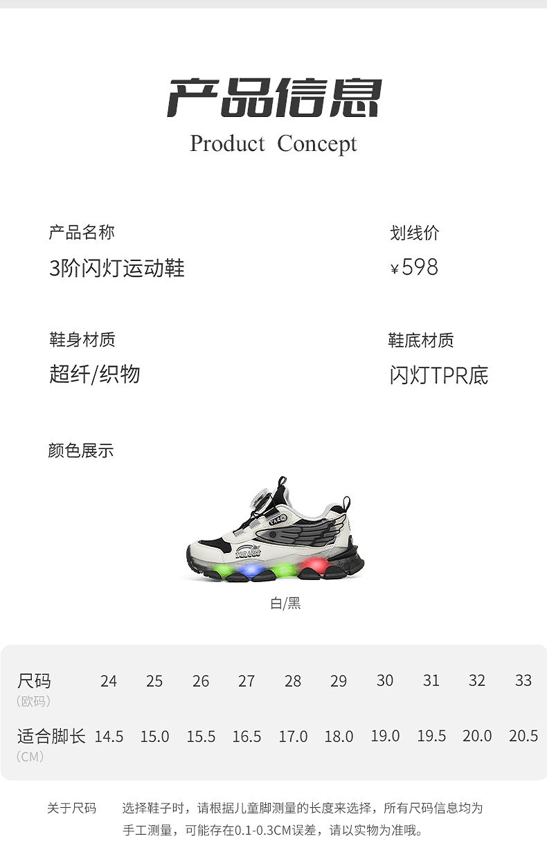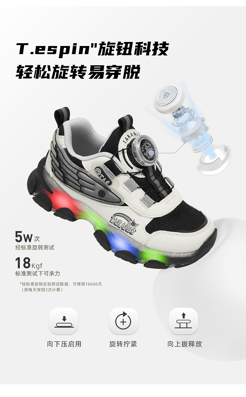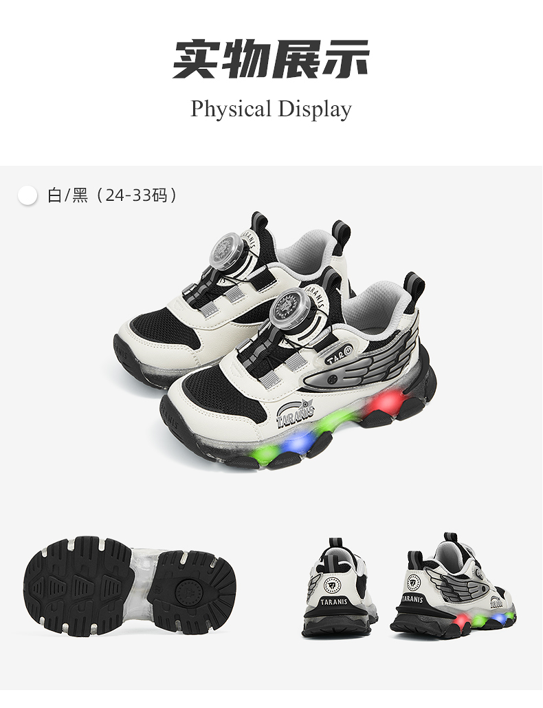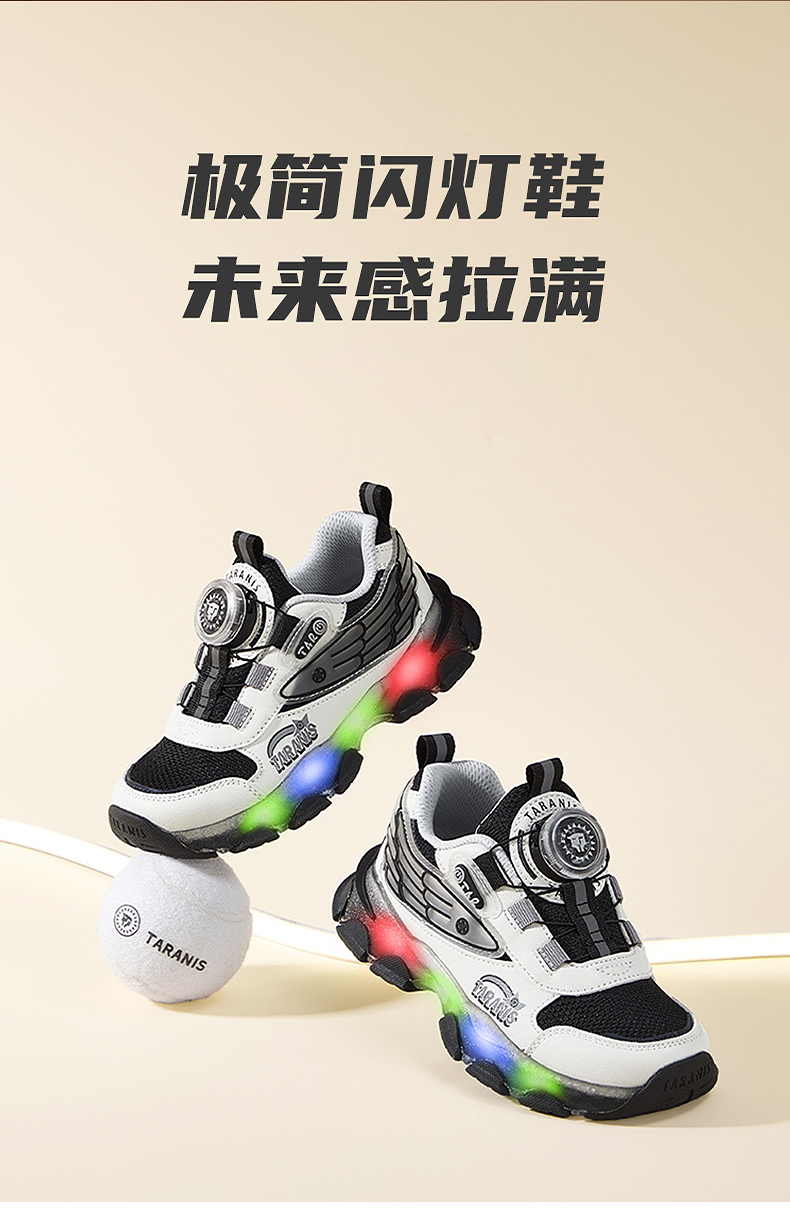 泰兰尼斯儿童闪灯鞋秋季新款男童闪灯运动鞋舒适透气运动鞋儿童鞋 T01X5C6441