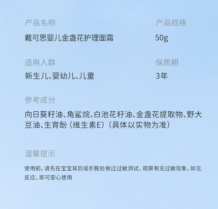 戴可思婴儿金盏花护理面霜2.0款春夏补水舒缓润肤乳♥