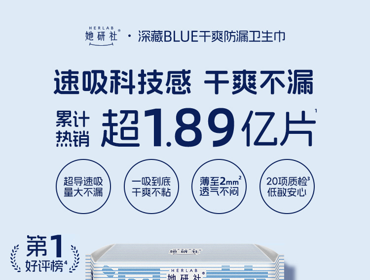 华西20251119-Herlab 她妍社深藏BLUE棉柔卫生巾240mm 8片装/一包