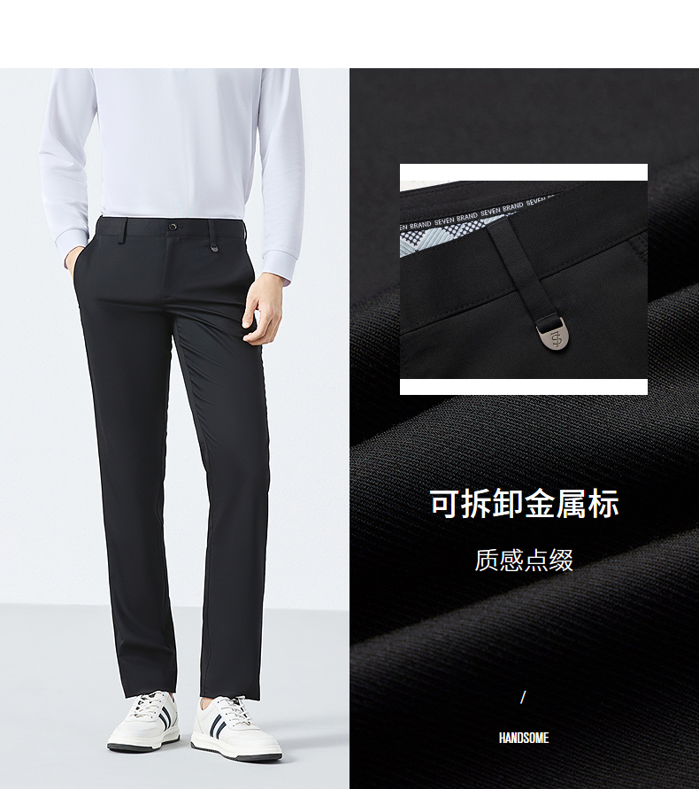 【含竹纤维】柒牌休闲裤男士2025春夏新款商务简约修身直筒长裤子 128H73850