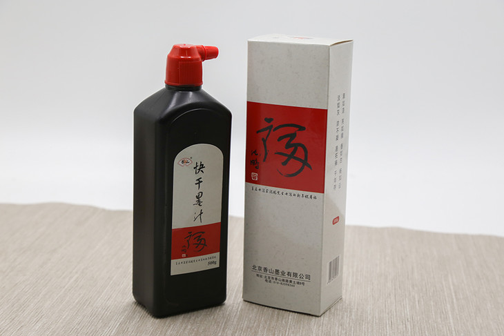推陈出新,适应时代。香山快干墨汁除保持香山墨汁一贯的墨色均匀,五色分明,淡而清澈,浓亦透光等特点外,还解决了广大书画爱好者写标语、对联,以及冬季和户外写作时作品难干的困扰。于是就有了:“快干墨汁,即写即干”。