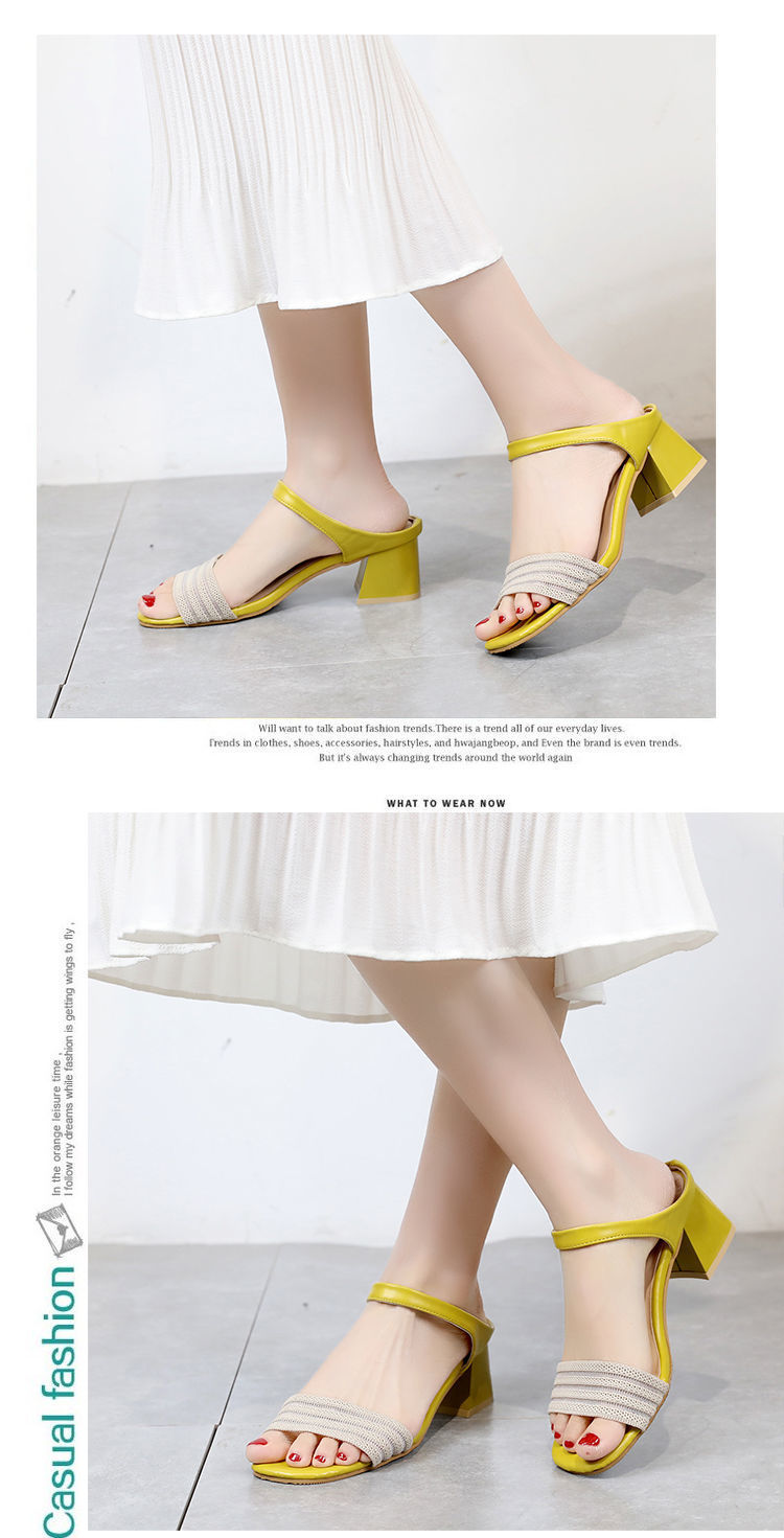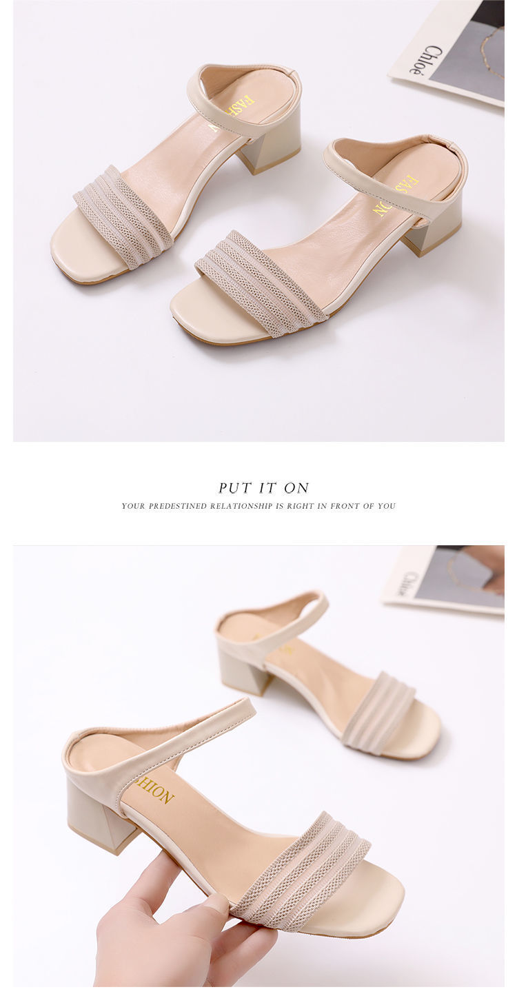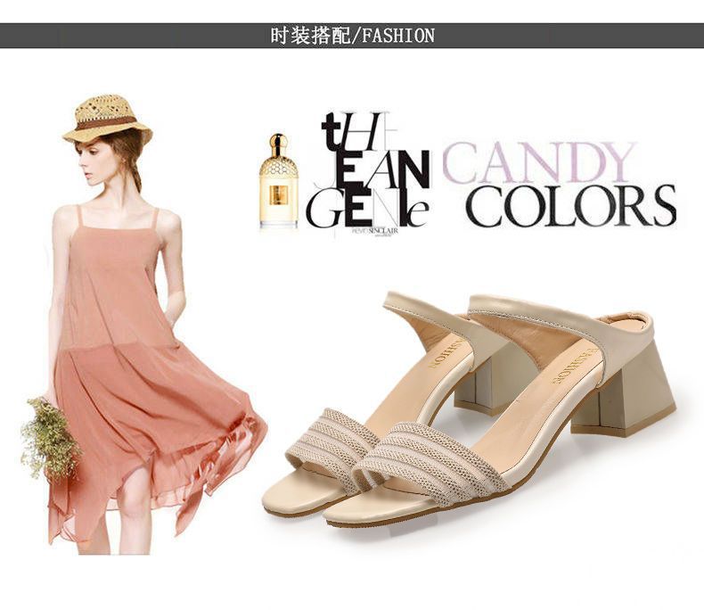 【舒适耐穿百搭!别致高跟拖鞋】鞋子市场货源凉拖女夏外穿洋气粗跟蚕丝凉拖鞋女