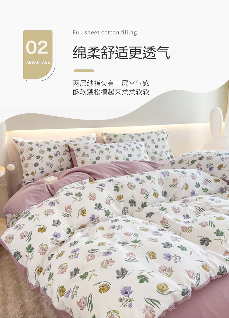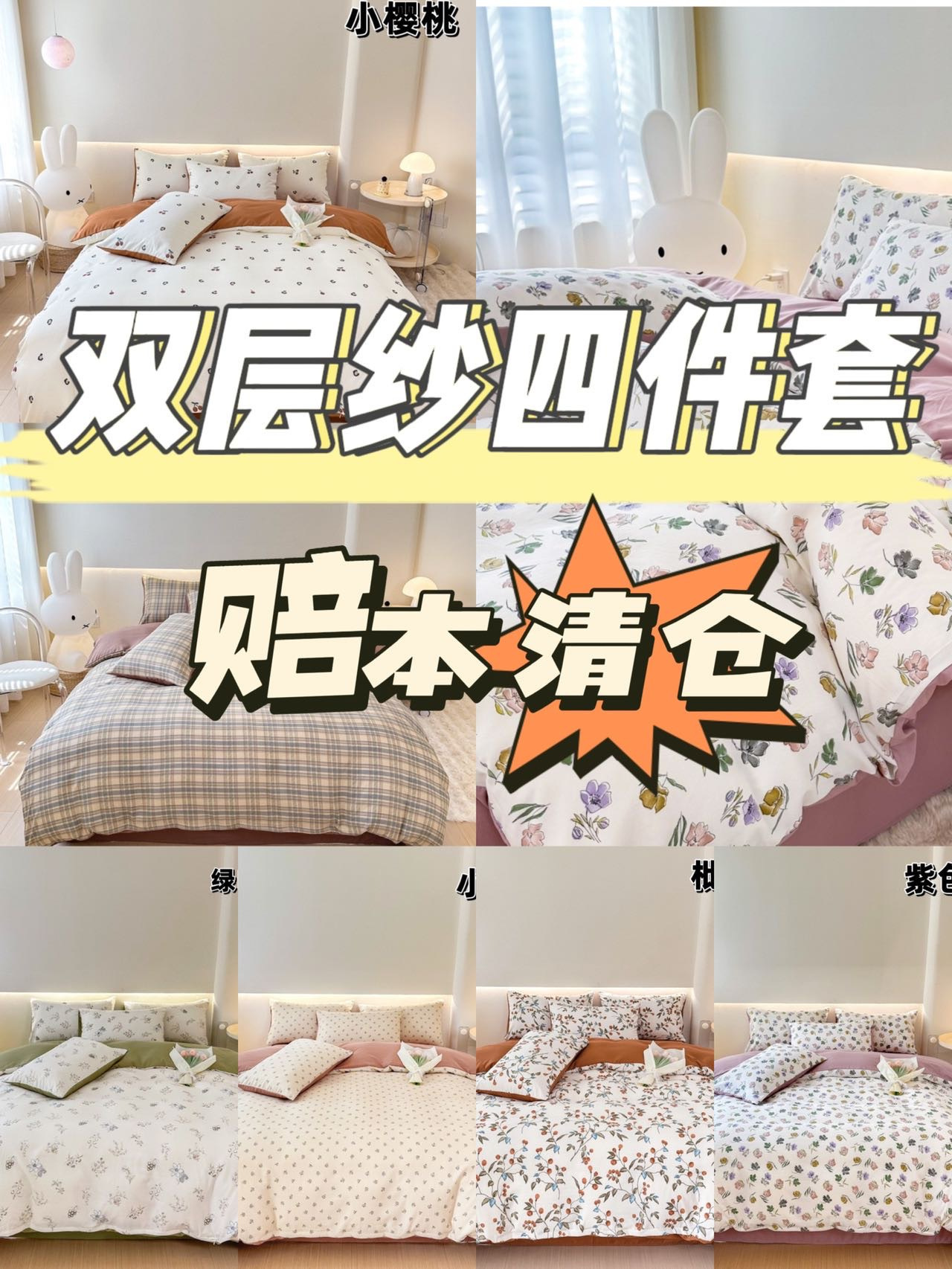 有氧棉双层纱四件套‼️ 告别冰冷被窝 来一场柔暖亲密的床品之旅