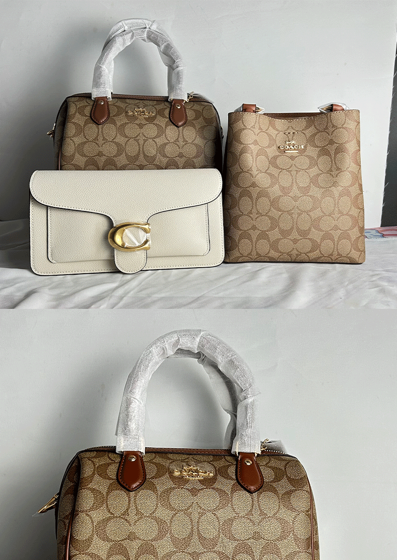 【品牌授权】【礼盒礼袋】COACH蔻驰包包女士 tabby 26白金酒神斜跨包波士顿中号枕头经典拼色手提包老花水桶包单肩斜跨手提包