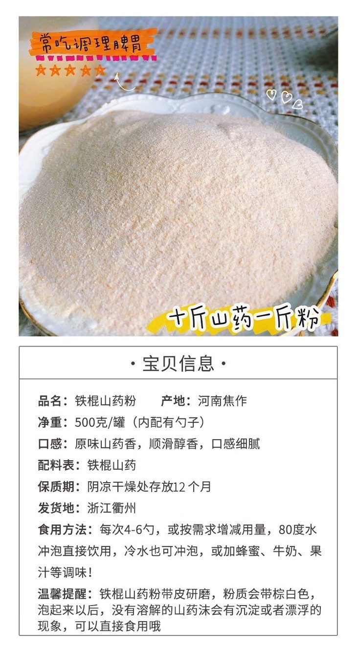 【铁棍山药粉】是今年新上市的温县垆土铁棍山药制作而成,只取营养价值集中的根部2/3做原料,无蔗糖、0添加、不熏硫,粉质细腻,温水冲泡,口感原味原香,全家都可以喝
