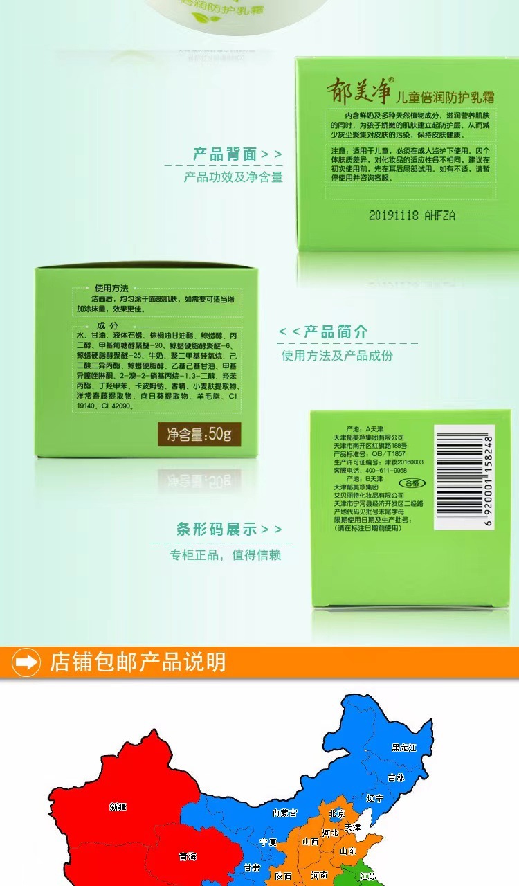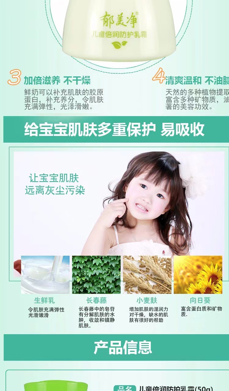 正品批发郁美净儿童防护保湿乳霜精品国货 商品图4