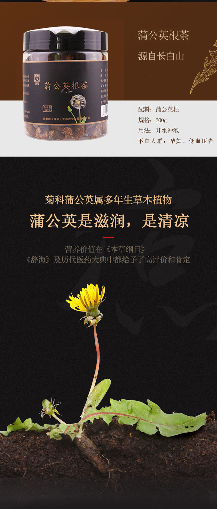 天野园·蒲公英根茶 200g 长白山野生天然蒲公英根 婆婆丁 送蒲公英叶茶