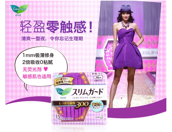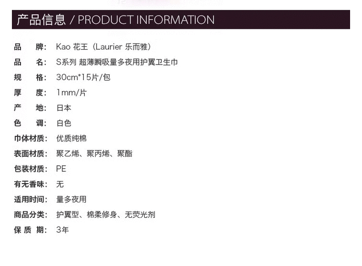 【保税仓】花王乐而雅Laurier-S系列夜用卫生巾- 30cm*15 3包/组