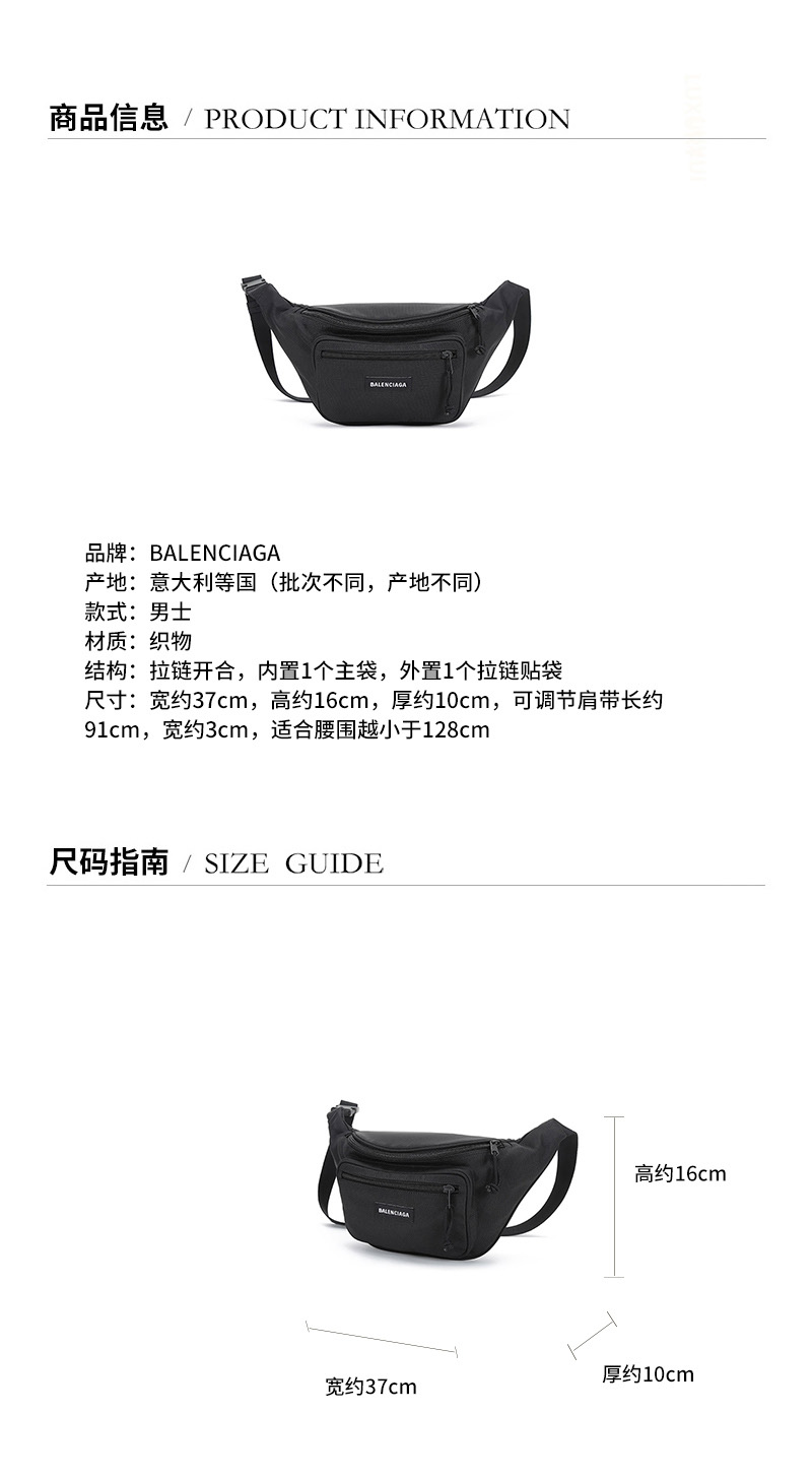 【国内现货】Balenciaga/巴黎世家 2021款 男士织物胸包斜挎包腰包 482389 2JMF7