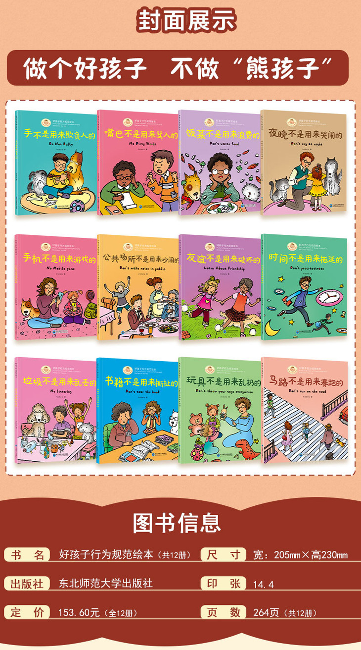 好孩子行为规范绘本12册儿童绘本3-8岁亲子阅读 幼儿园老师推荐读物好习惯逆商培养畅销书籍幼儿故事书2至4岁手不是用来打人的