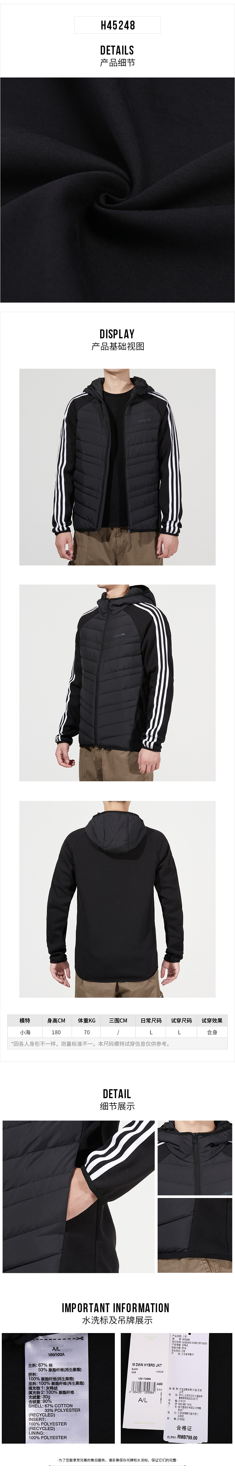 adidas阿迪达斯男子运动休闲连帽保暖羽绒服外套H45248
