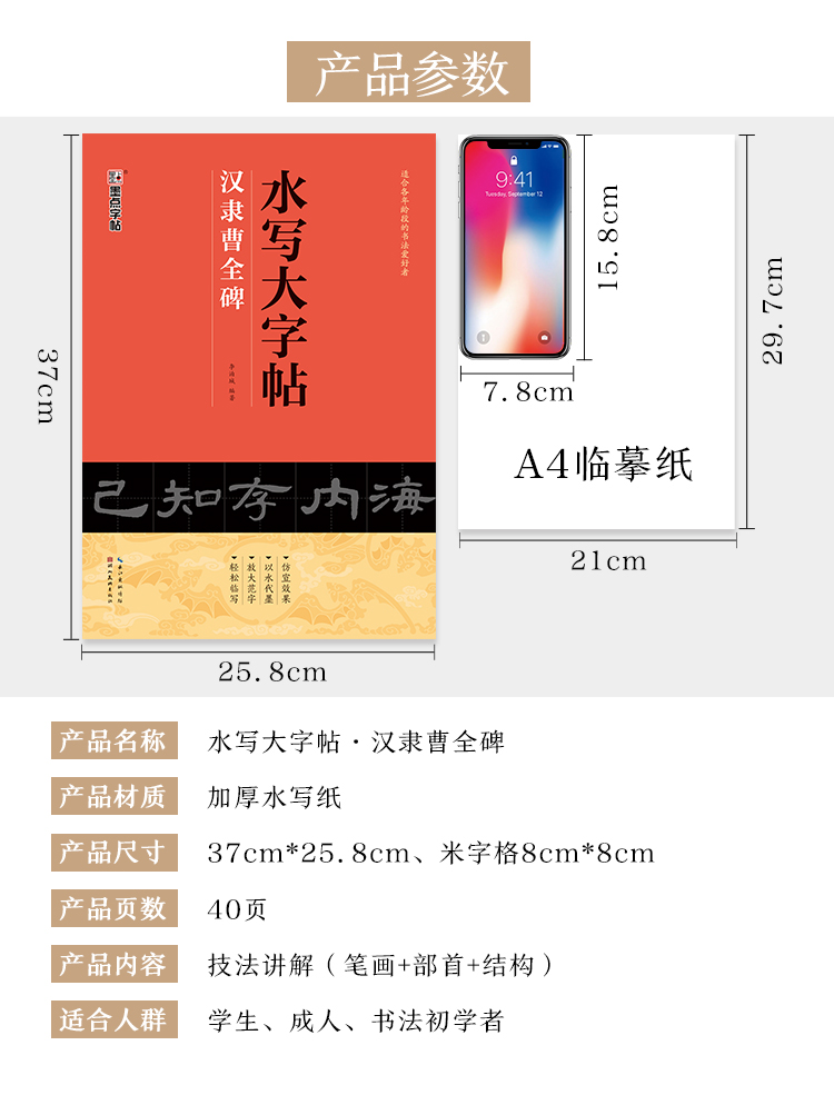 墨点字帖 水写大字帖 毛笔字初学者入门练习颜真卿柳公权楷书曹全碑隶书王羲之兰亭序行书清水临摹学生万次水洗布练字书法用字帖
