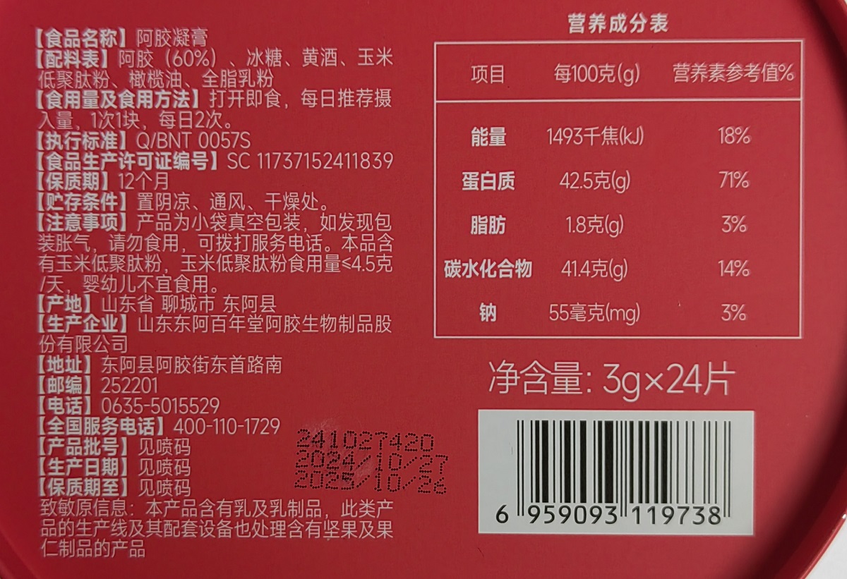 ² 【百年堂60%小鲜胶阿胶凝膏】一款可以含着吃的阿胶 单片独立包装 3g*24片/大盒 HM02-CRMM-BNT【HOT】