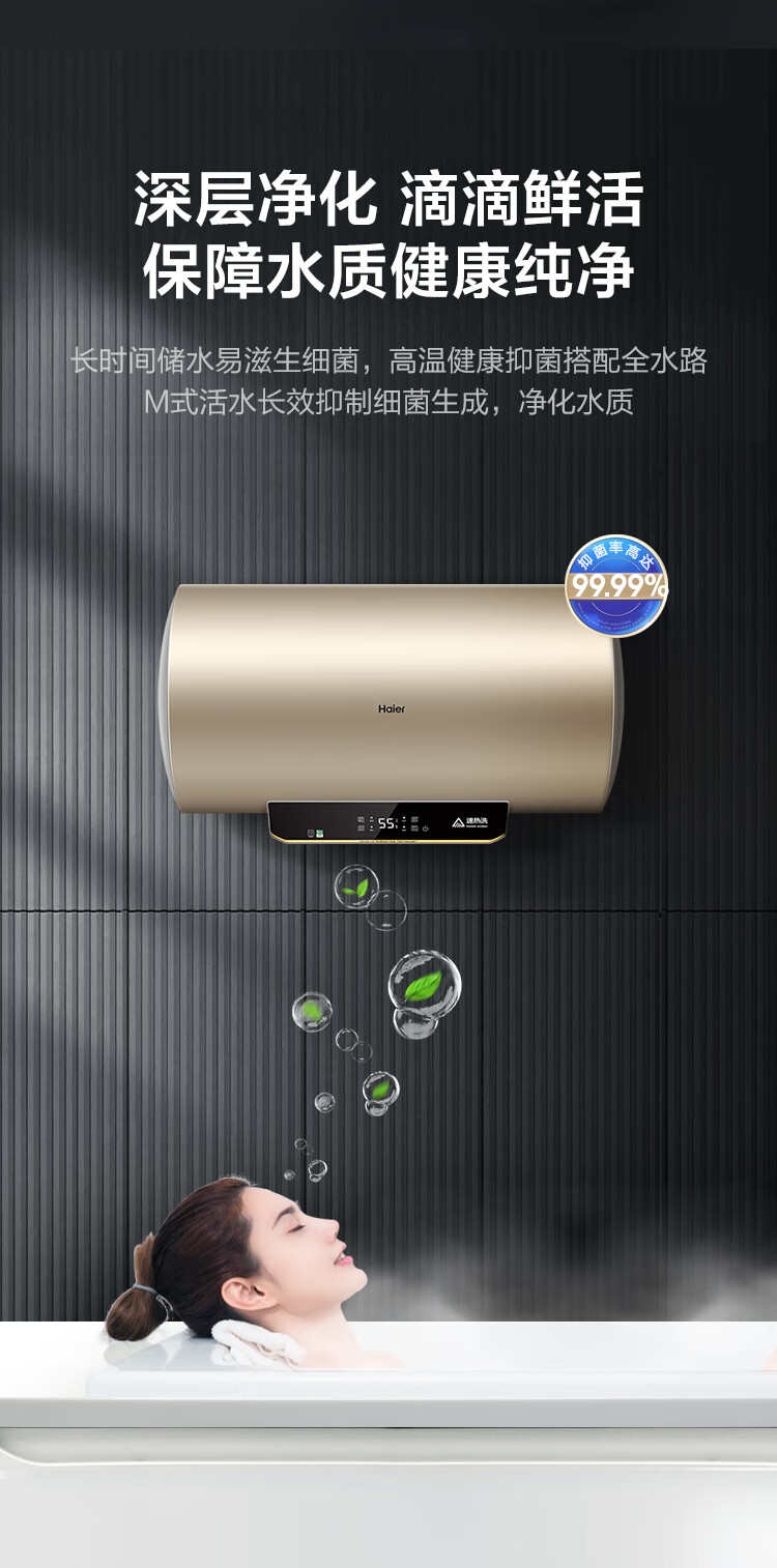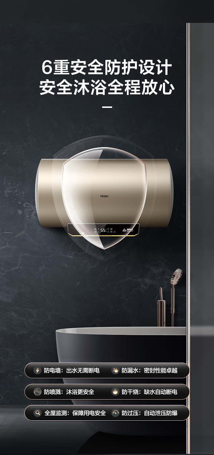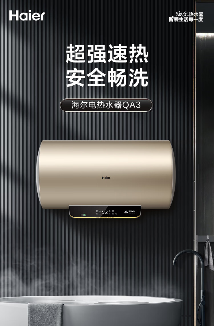 海尔60升 电热水器 3000W 速热 金刚三层胆 高温抑菌 节能休眠 预约洗浴 EC6001-QA3 *