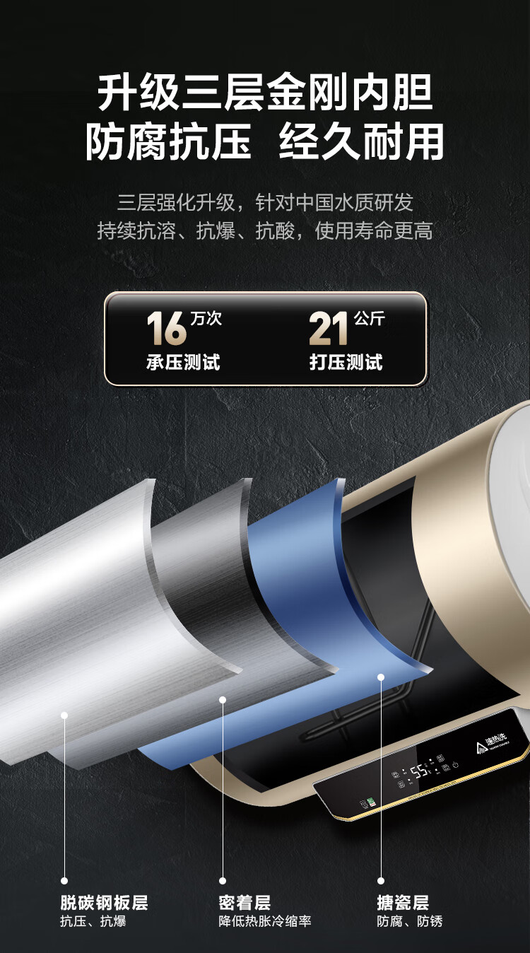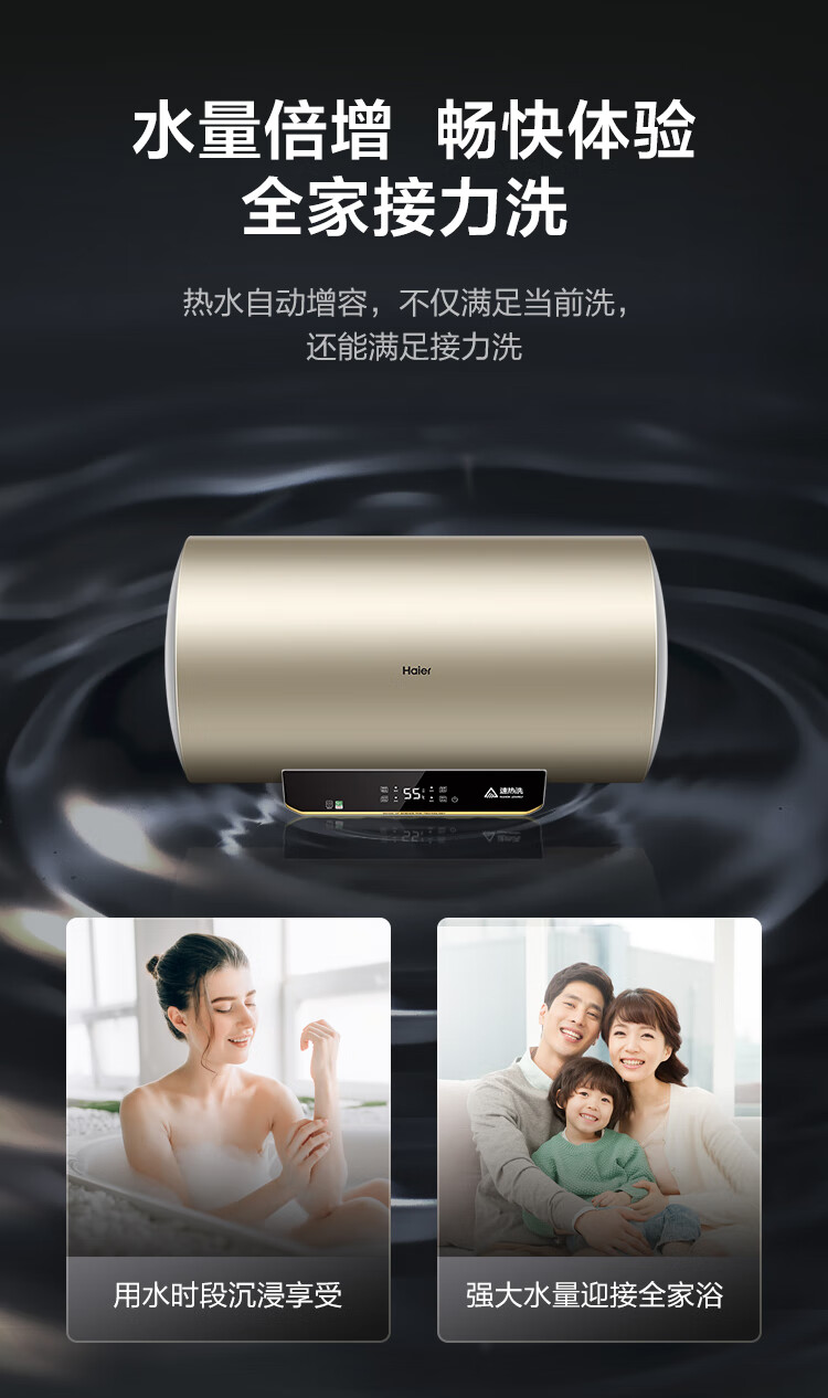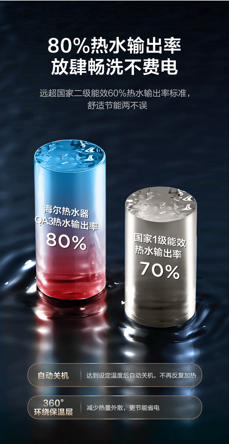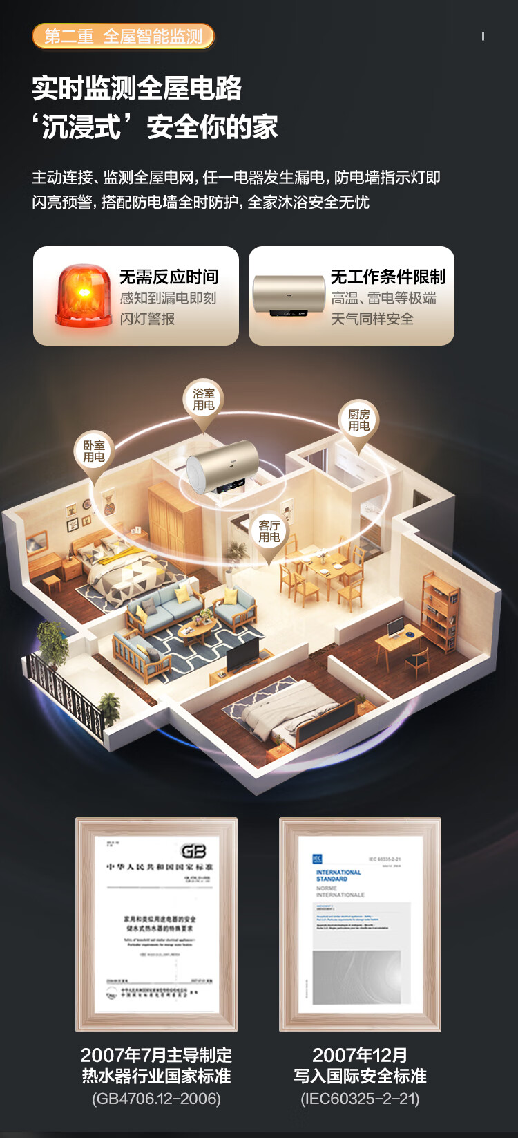 海尔60升 电热水器 3000W 速热 金刚三层胆 高温抑菌 节能休眠 预约洗浴 EC6001-QA3 *