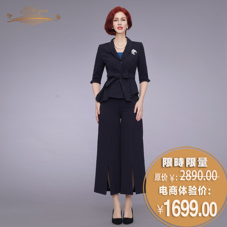 【特惠】YIQU|“时尚之旅”阔腿裤(深蓝条纹)PT