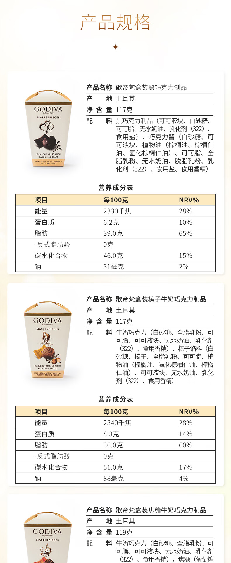 歌帝梵榛子牛奶巧克力117g/盒