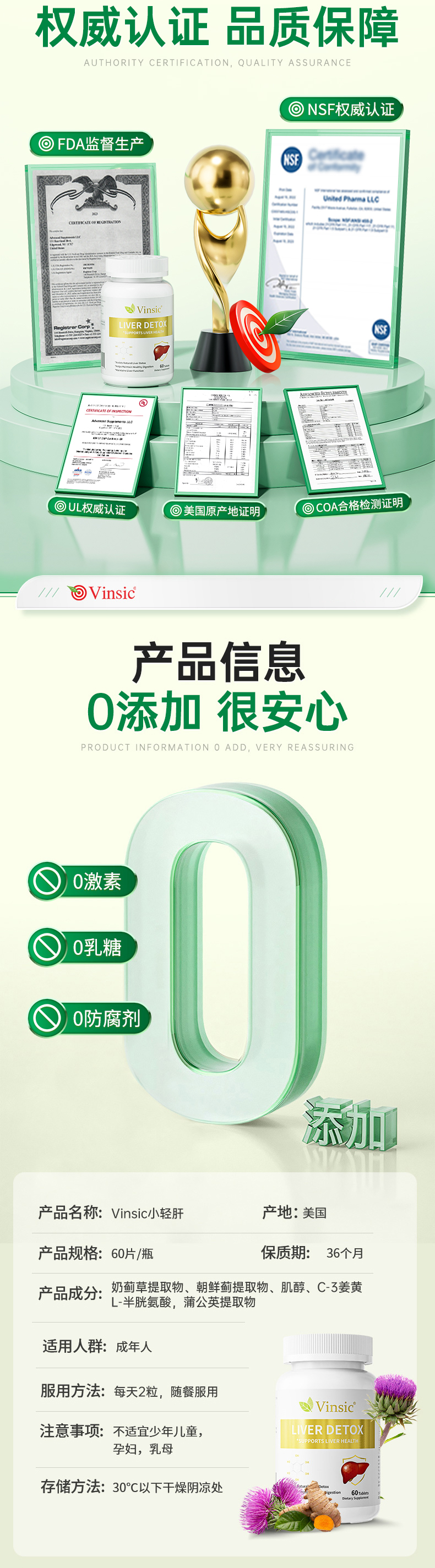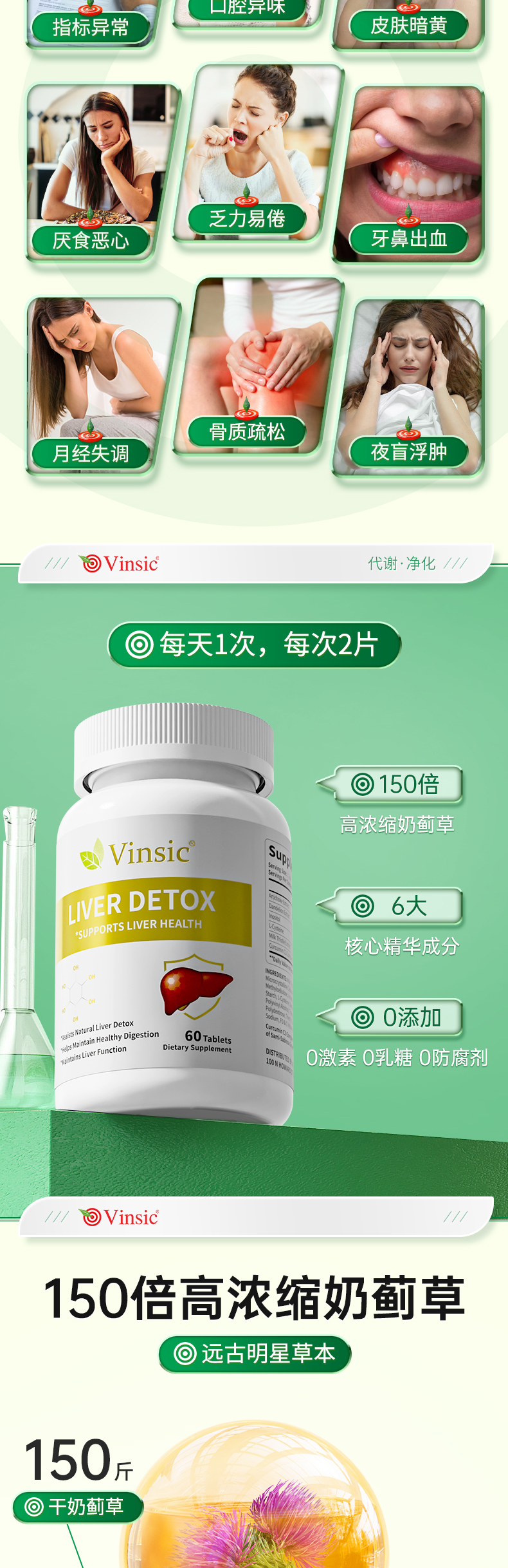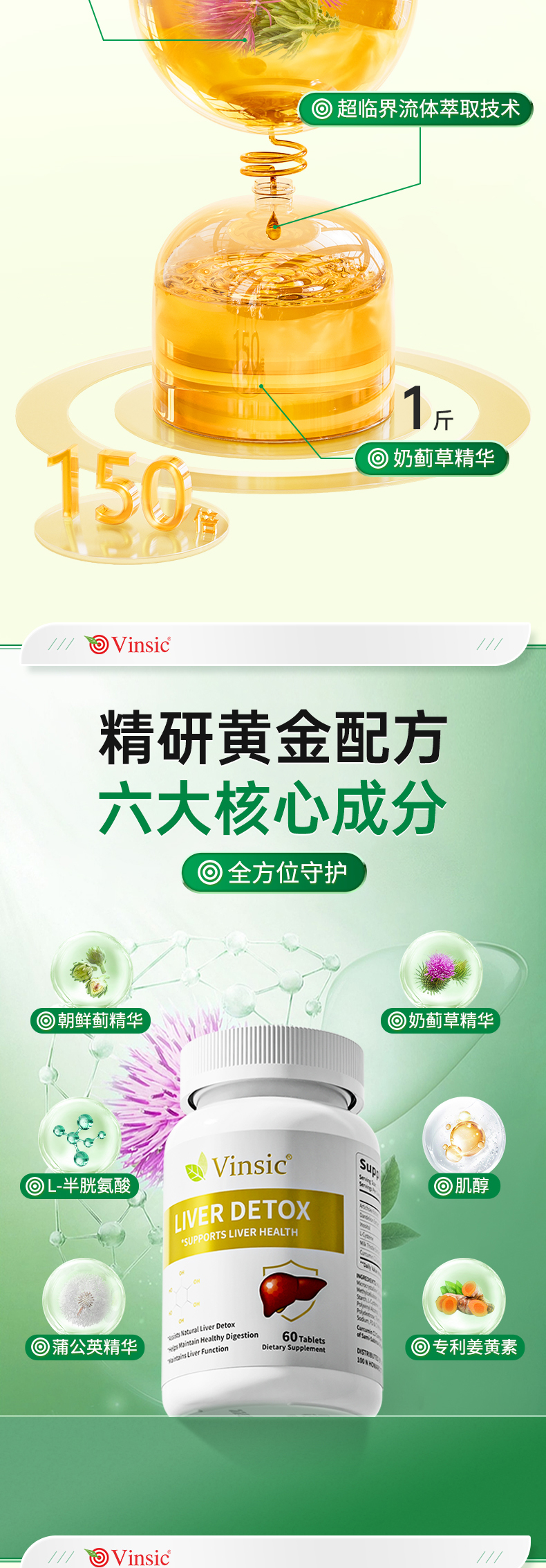 ⁶近效清仓【Vinsic小轻肝】奶蓟草350mg+朝鲜蓟50mg+肌醇30mg+姜黄 30mg+蒲公英提取物 20mg+L-半胱氨酸 效期到26年8月60粒/瓶SS06-QTT-VSK