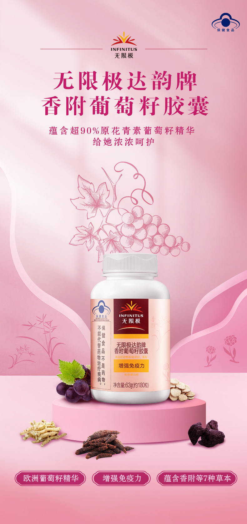 【预售 急单慎拍】无限极达韵牌香附葡萄籽胶囊 180粒/瓶 原价288元