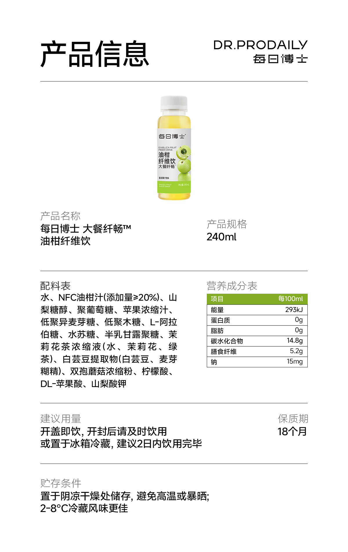 ⁵59元/8瓶【每日博士油柑纤维饮】一瓶相当于73颗油柑+6重益生元+白芸豆 240ml一瓶YY05-QTT-SA