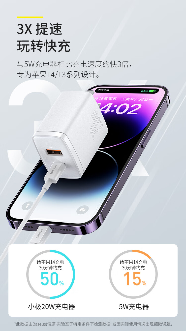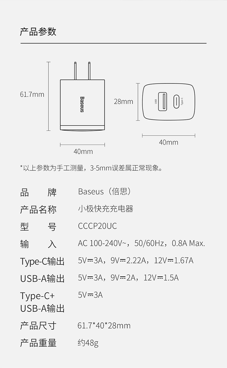 倍思 小极快充充电器 U+C 20W 中规 CCCP20UC(无线)