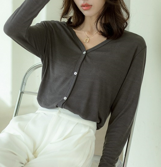 3、这款薄开衫轻盈柔软不软塌,面料蓬松软糯,垂坠感还强,全然不勒肉,根本穿不腻