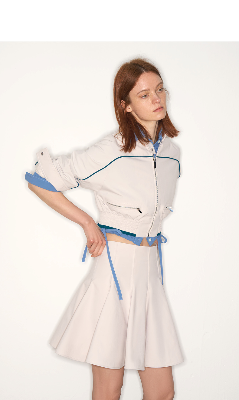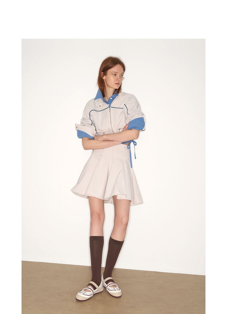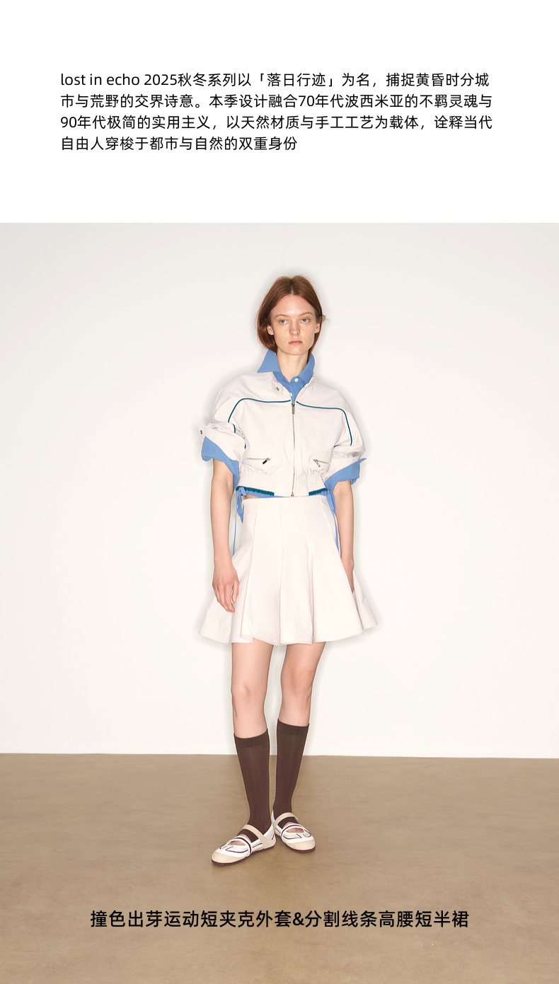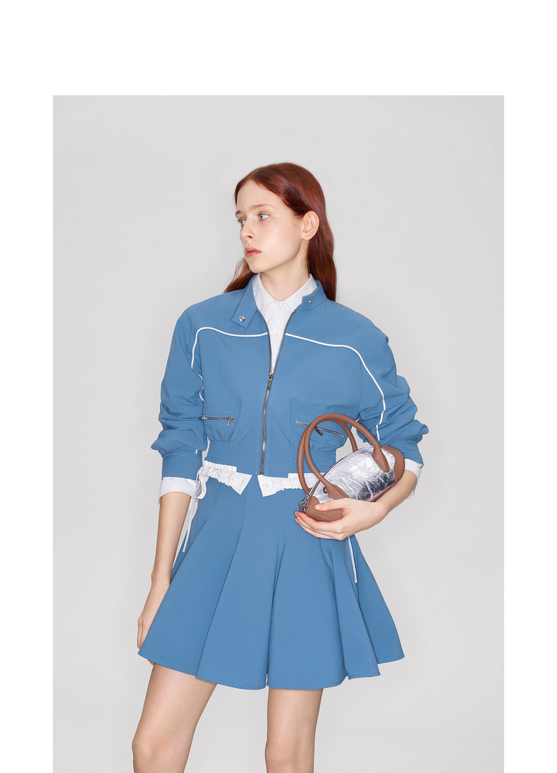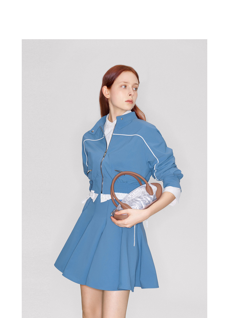 lost in echo2025秋冬新款撞色运动收腰显瘦夹克短外套高腰半身裙
