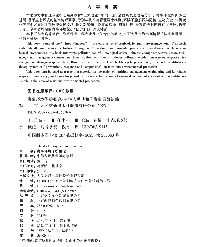 书名:海事环境保护概论
