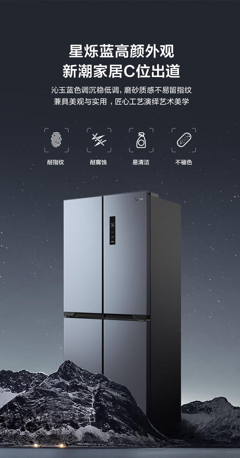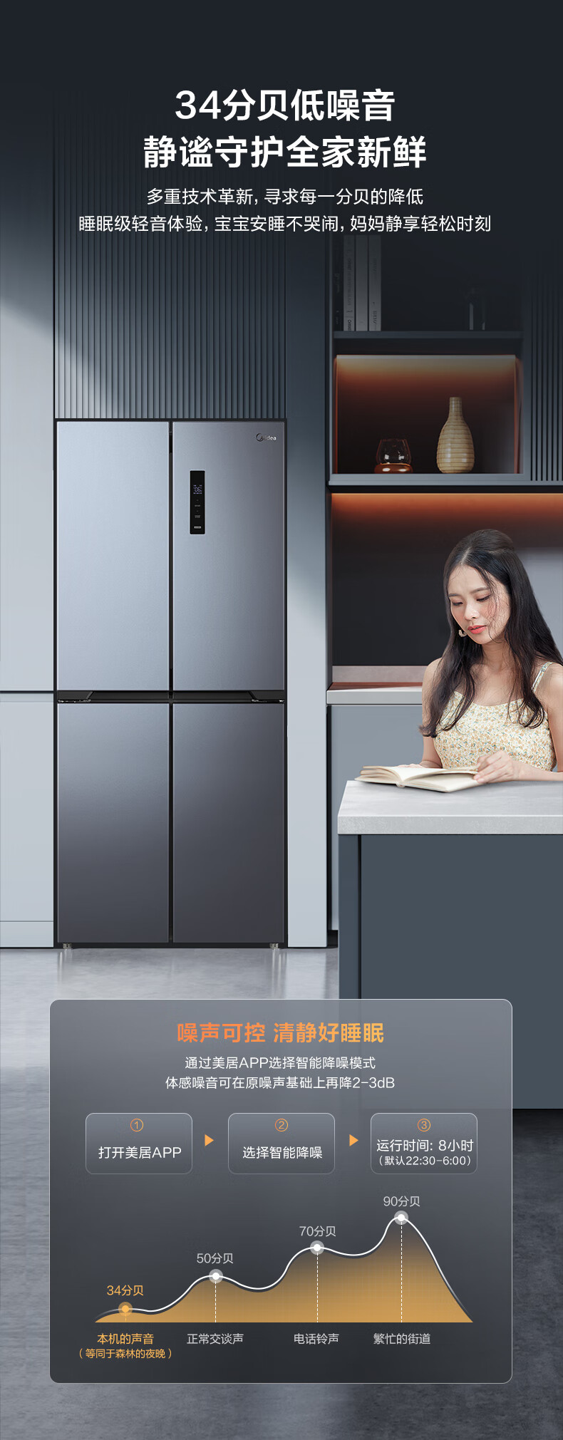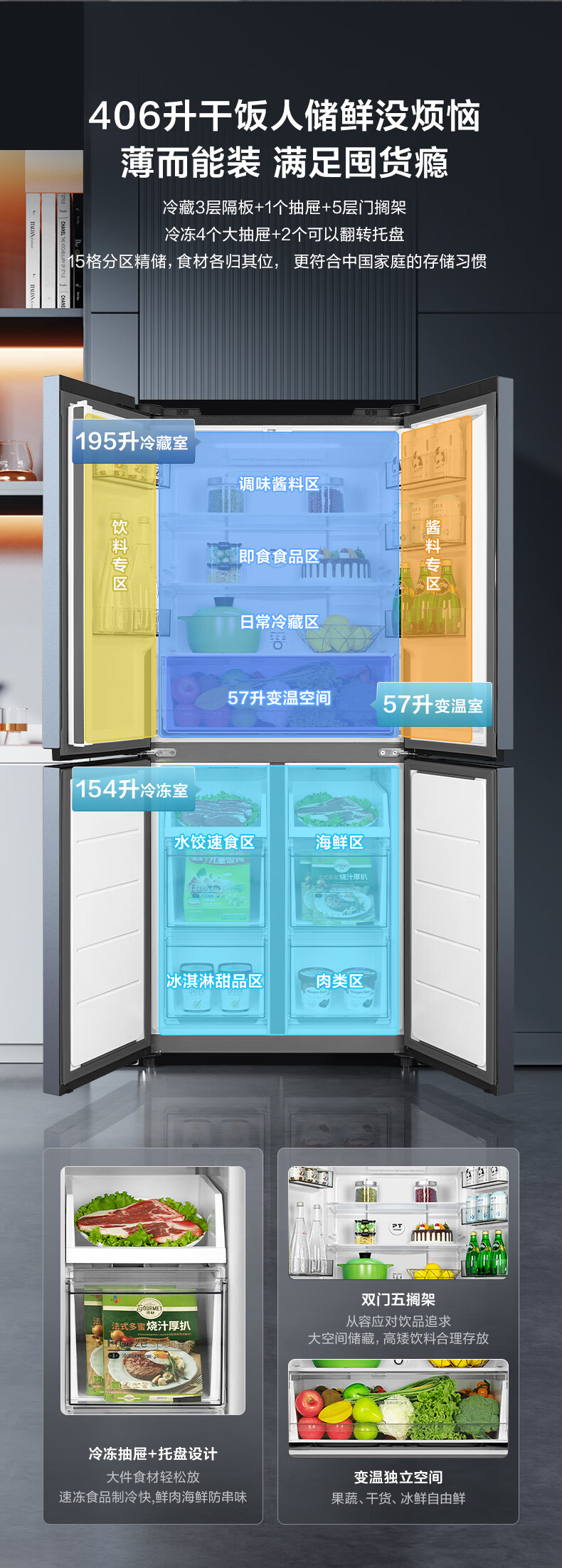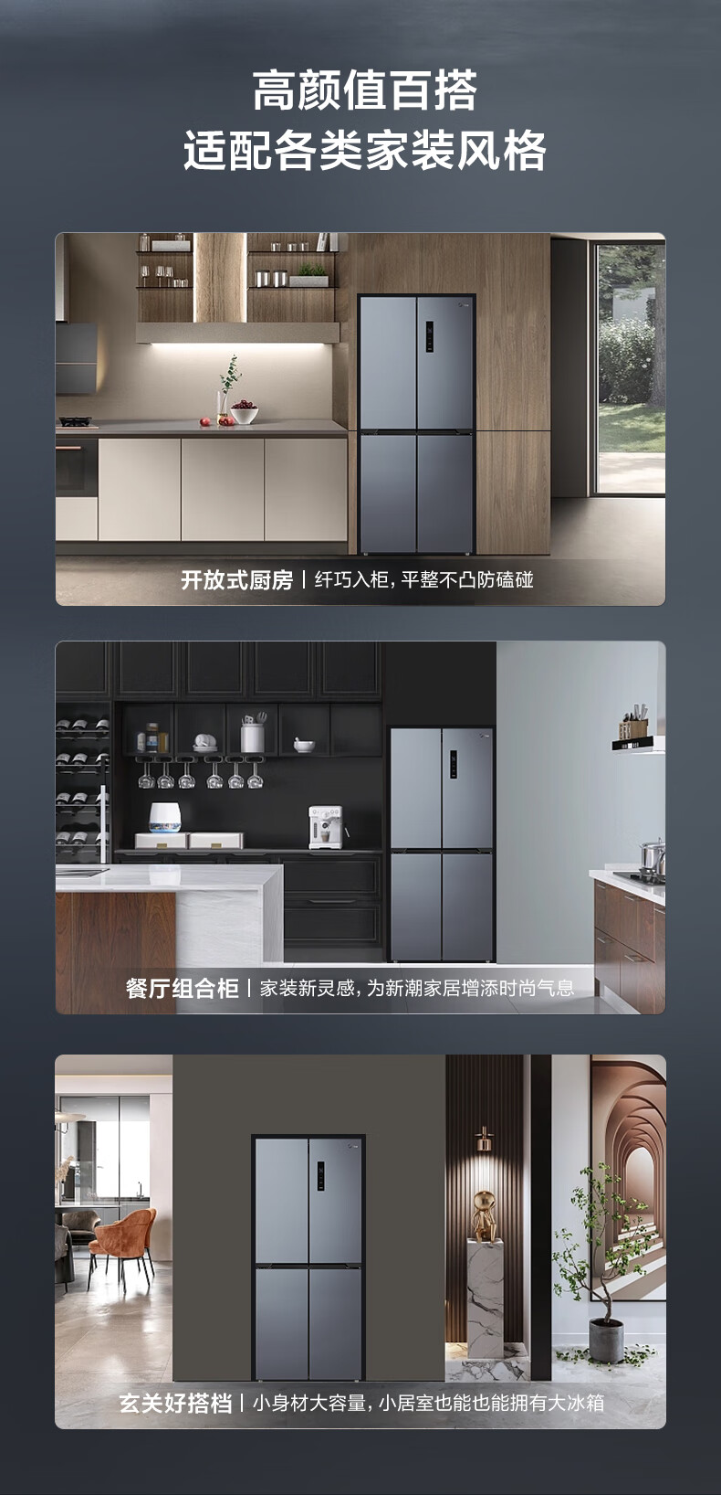 美的61厘米薄406升一级智能双变频十字对开双开门四开门家用电冰箱大容量BCD-406WSPZM(E)