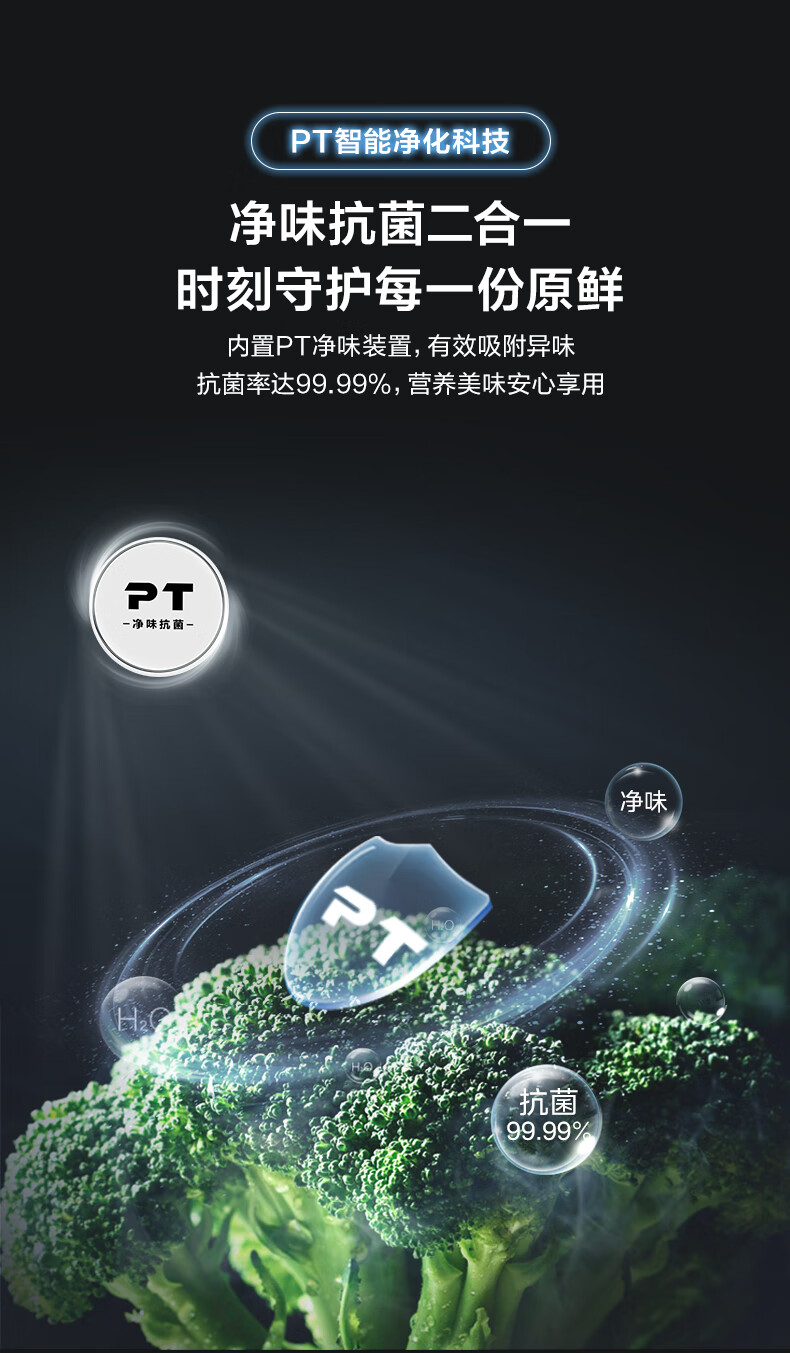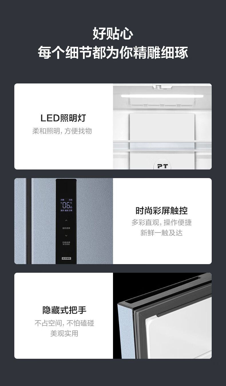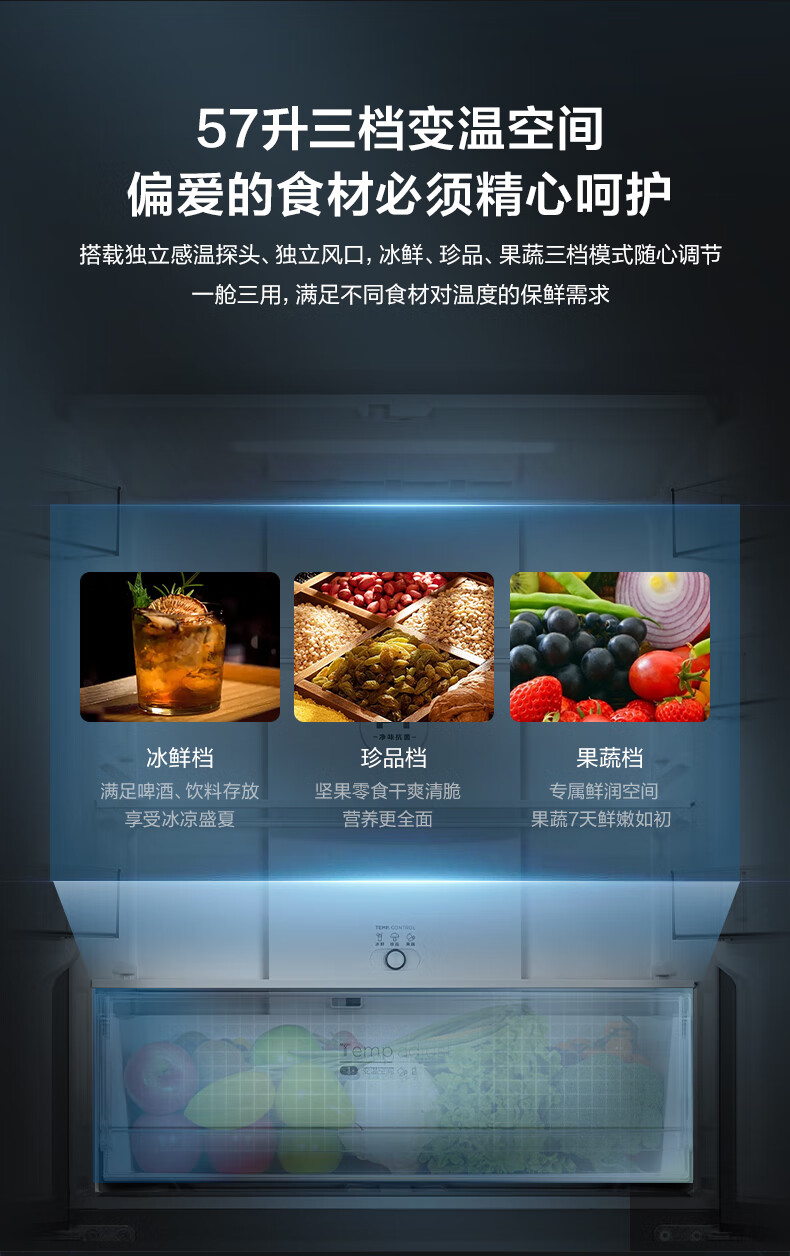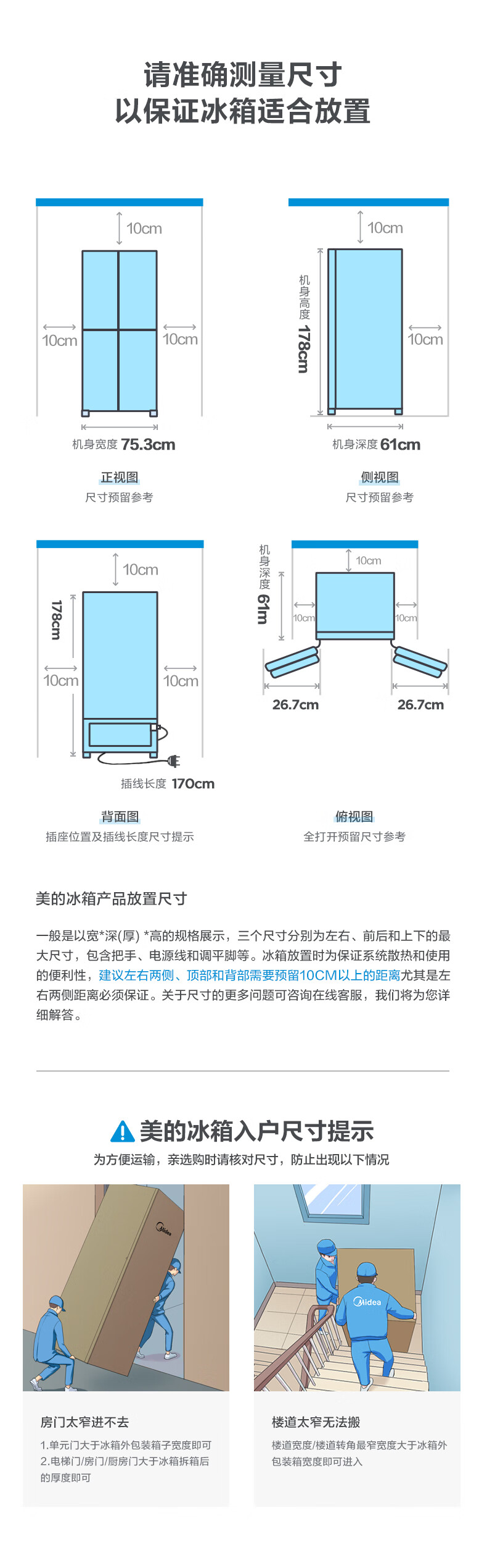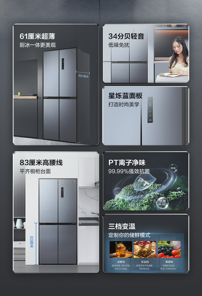 美的61厘米薄406升一级智能双变频十字对开双开门四开门家用电冰箱大容量BCD-406WSPZM(E)