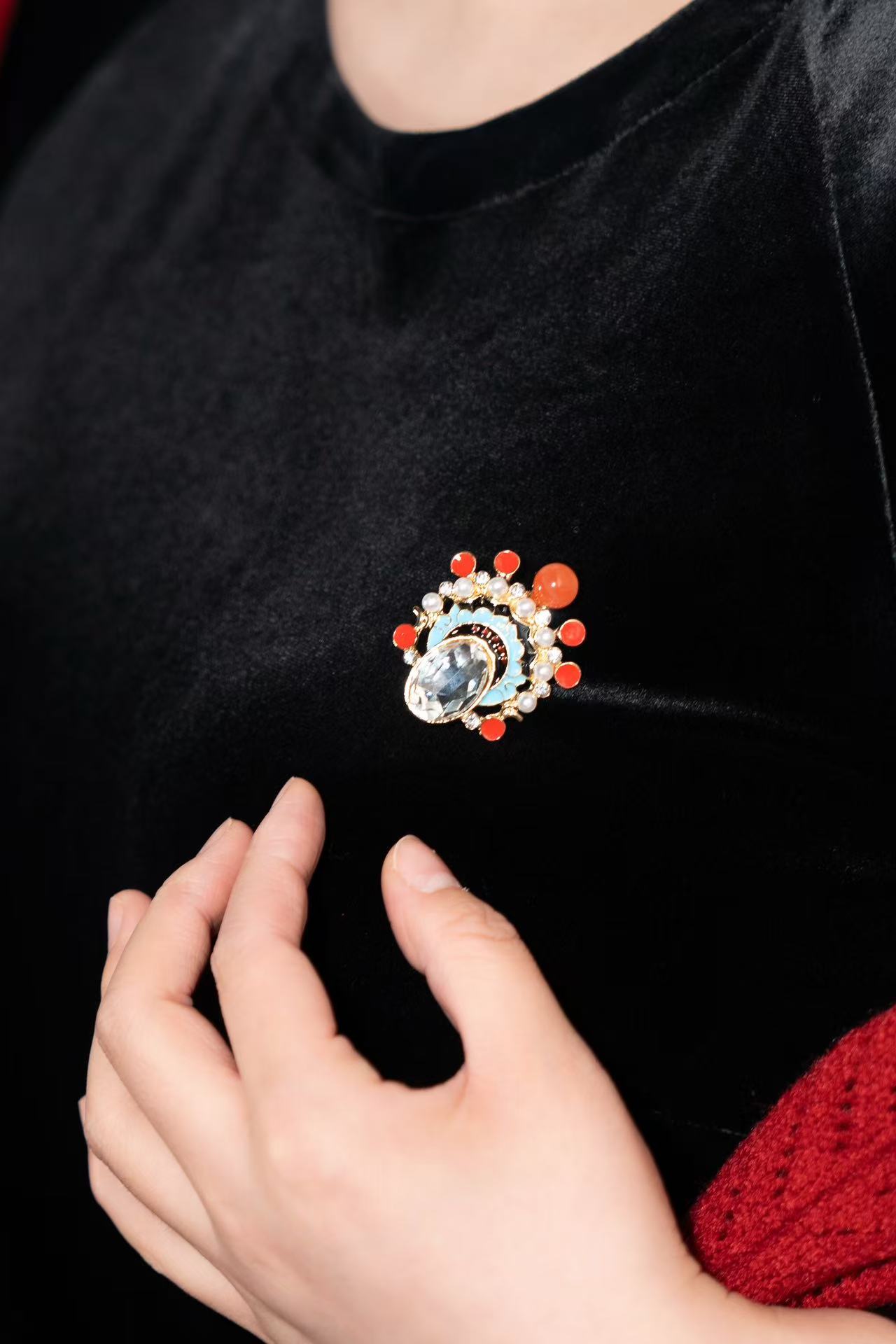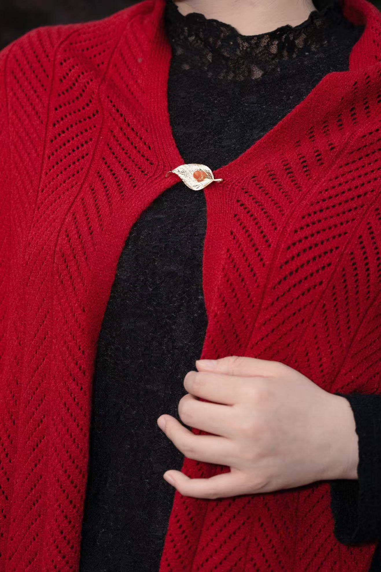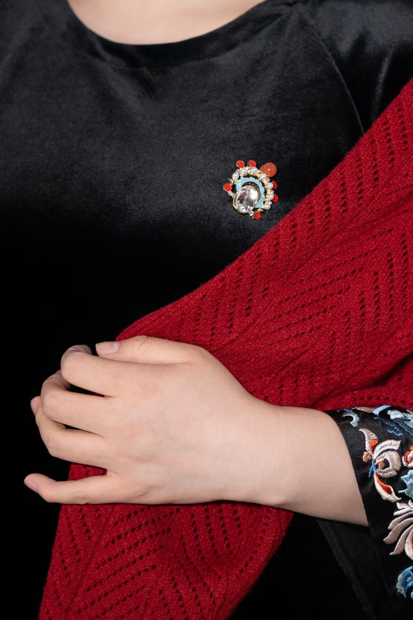 一周发货【南红胸针 & 大红三角披肩】9款胸针,主体锌合金材质,点缀南红、锆石,金属部分不容易掉色,放心戴。解锁三角披巾多种戴法,披肩15%羊毛20%腈纶23%尼龙42%再生涤纶,205*64cm
