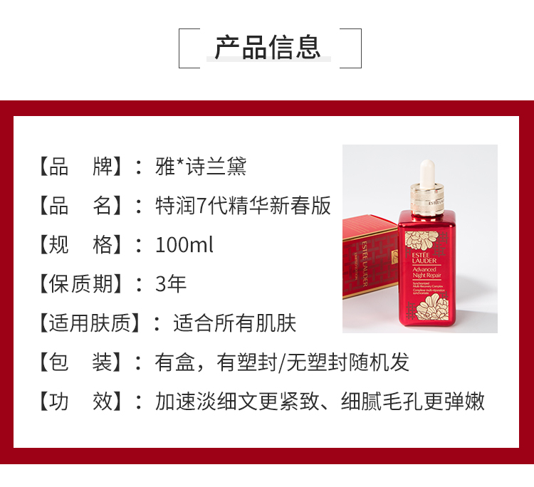 BF 美国雅诗兰黛ANR特润小棕瓶第七代7代即时修护紧致 新春版精华露100ml
