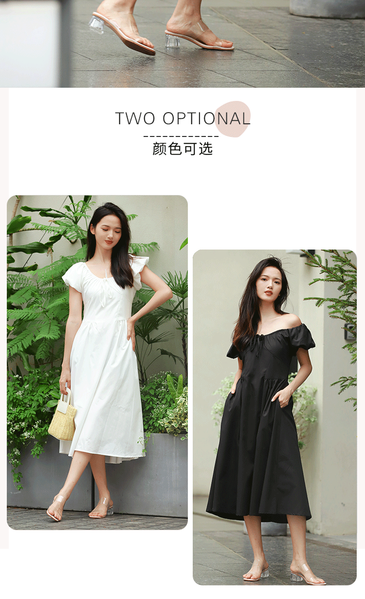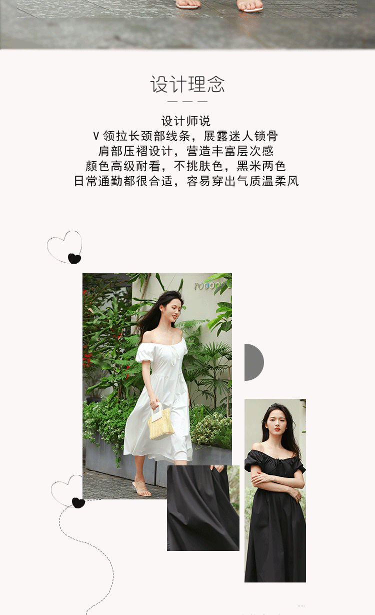 AVANN赫本美学大V领收腰茶歇连衣裙514