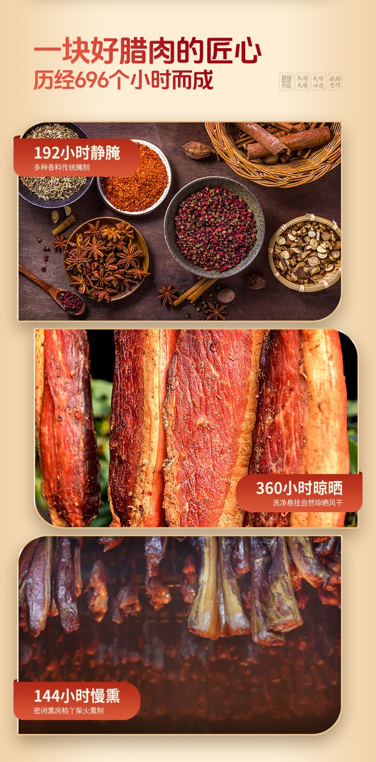 【产品特点】非遗技艺,精选原材,匠心手作,自然风干,色泽诱人,肉质细嫩,咸淡适中,不柴不腻;