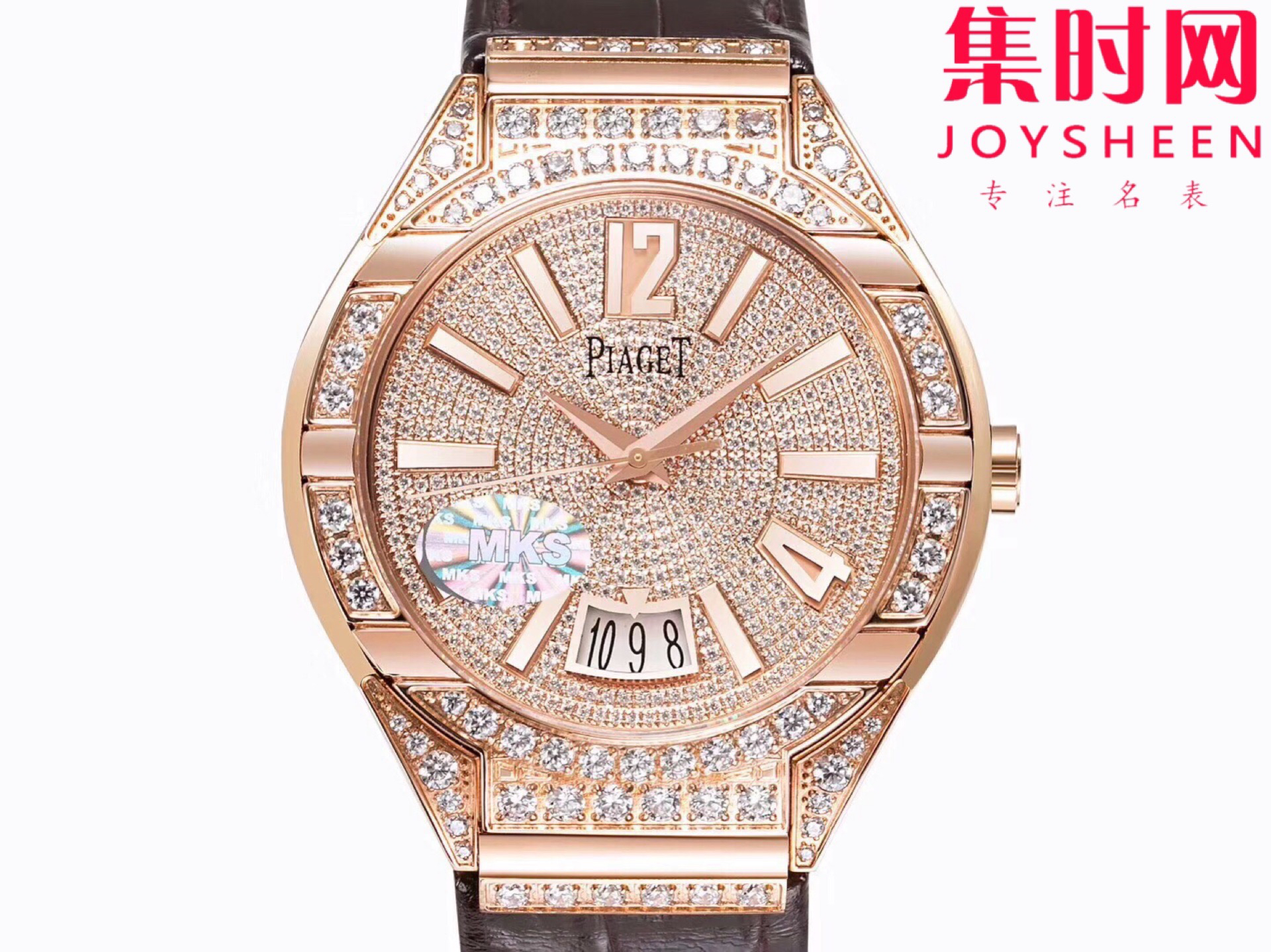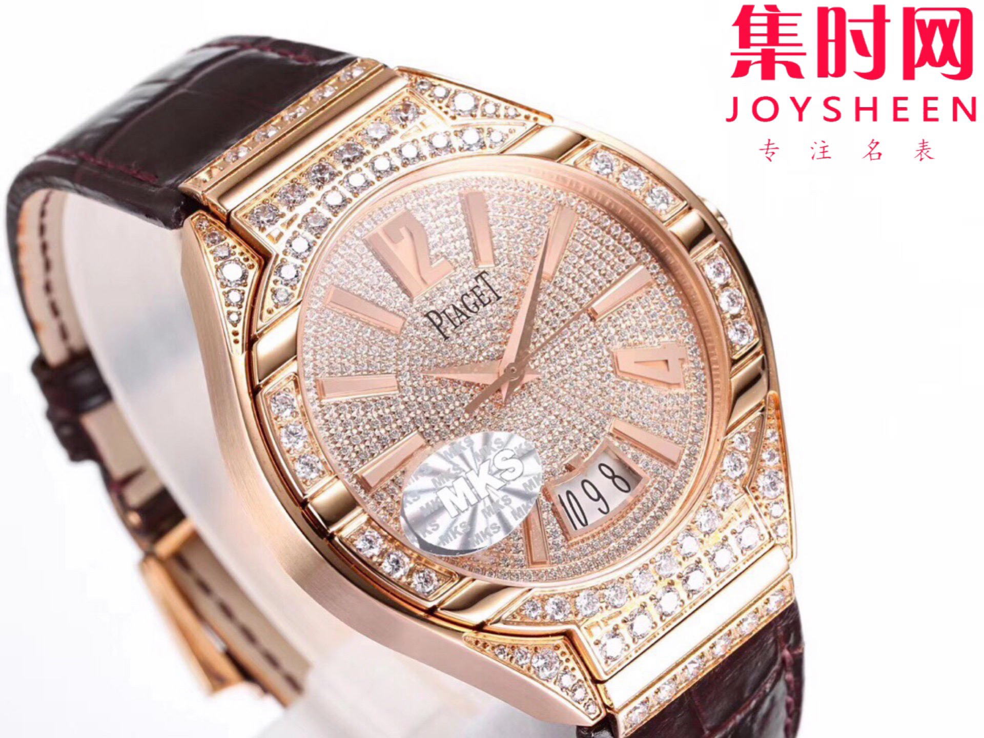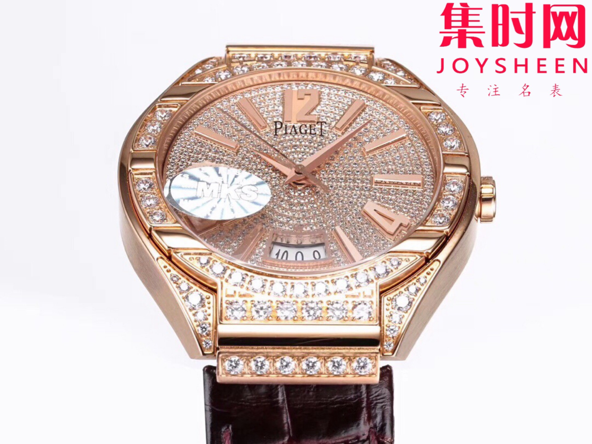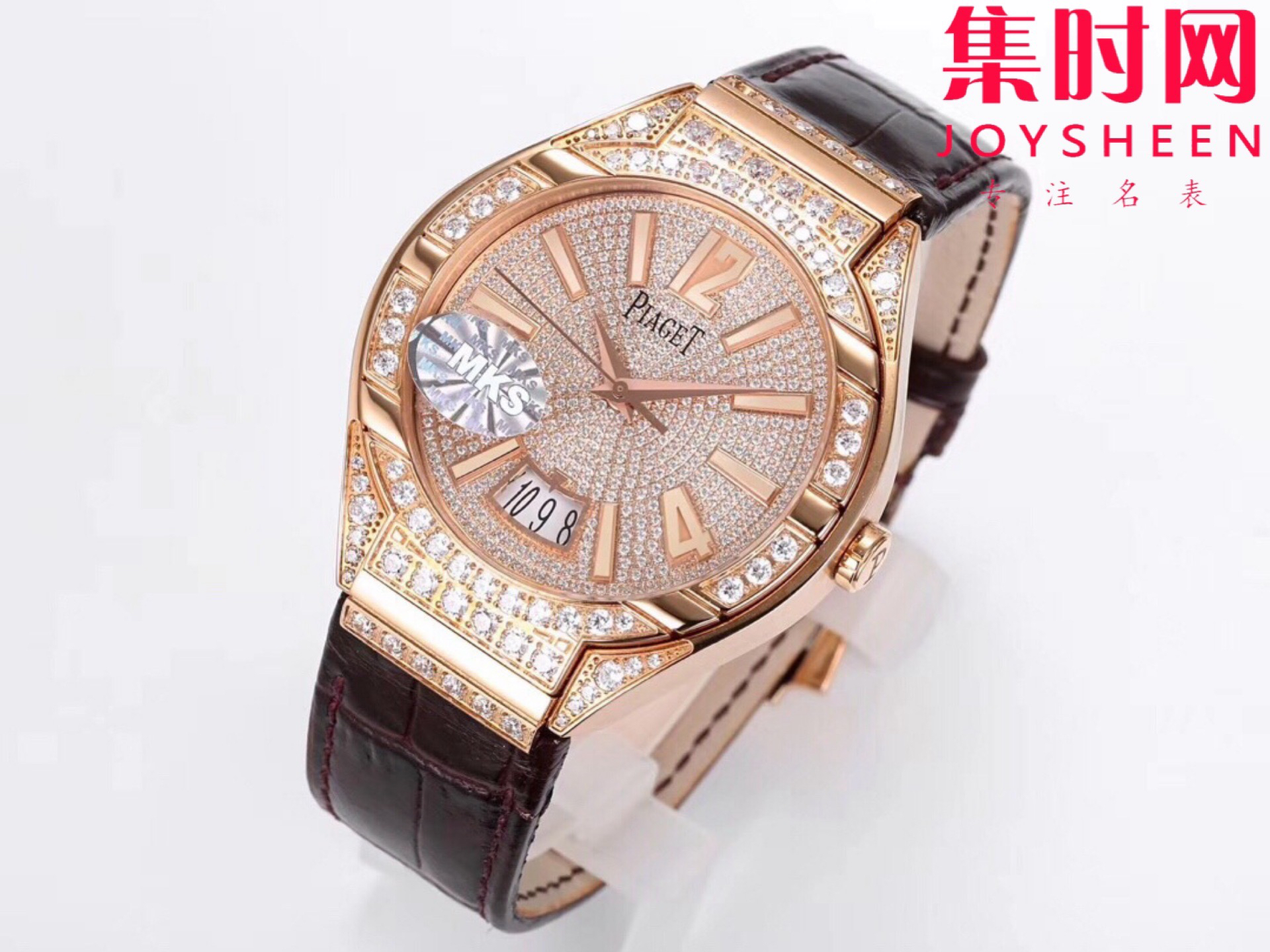 【表壳】枕形表壳,搭配微弧式表肩,每一个成品壳套都经过MK质检员精挑细选,在进行珠宝镶嵌加工。为了达到原装的效果(整齐,镶嵌风格统一)。表壳上78颗ding级人工美钻,必须由一位珠宝镶嵌师一气呵成。