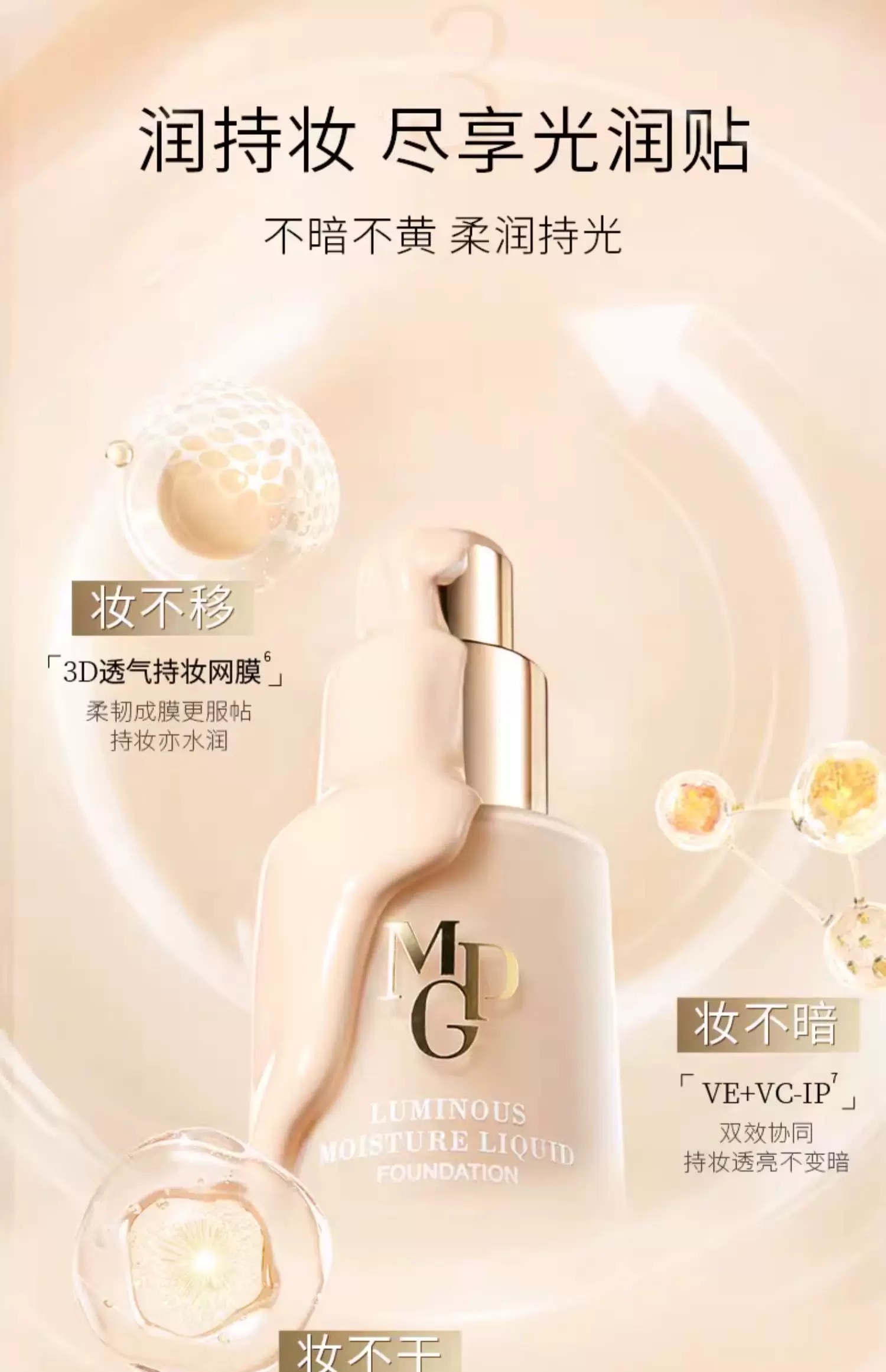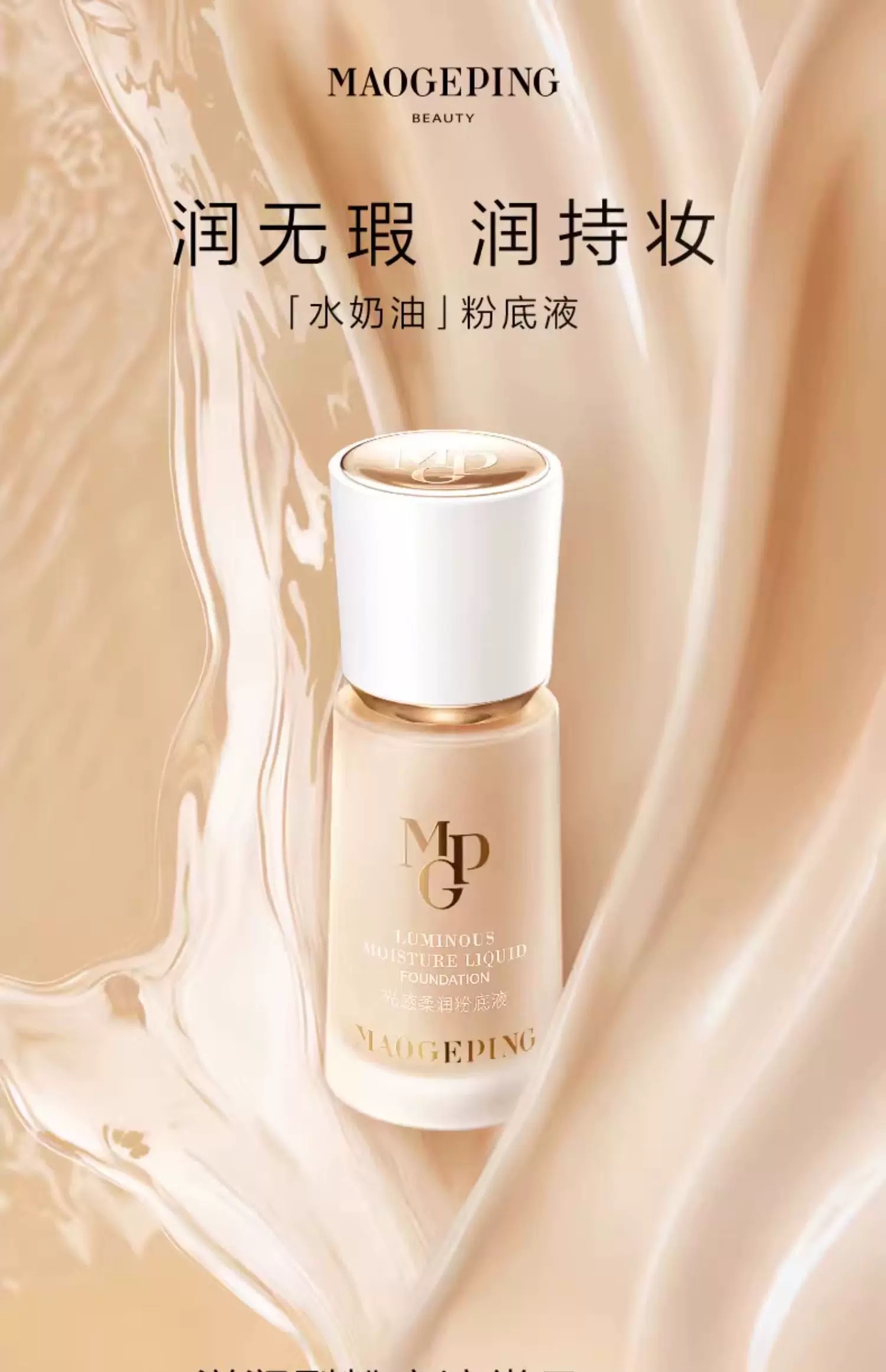 毛戈平光感柔润水奶油粉底液30ml 中样正装滋润干皮奶油肌