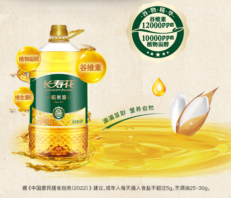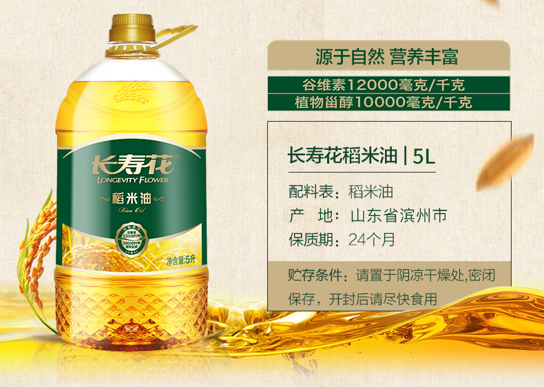长寿花稻米油5L 富含谷维素+植物甾醇