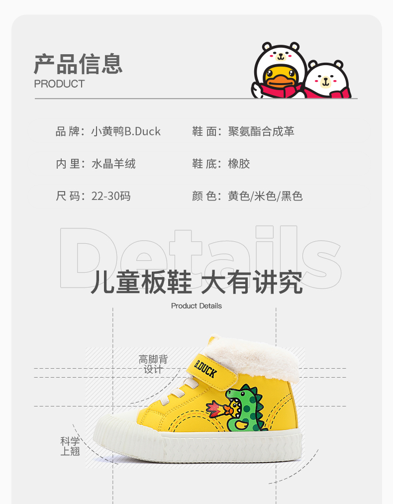 B.DUCK小黄鸭童鞋冬季板鞋22-30 B5283062