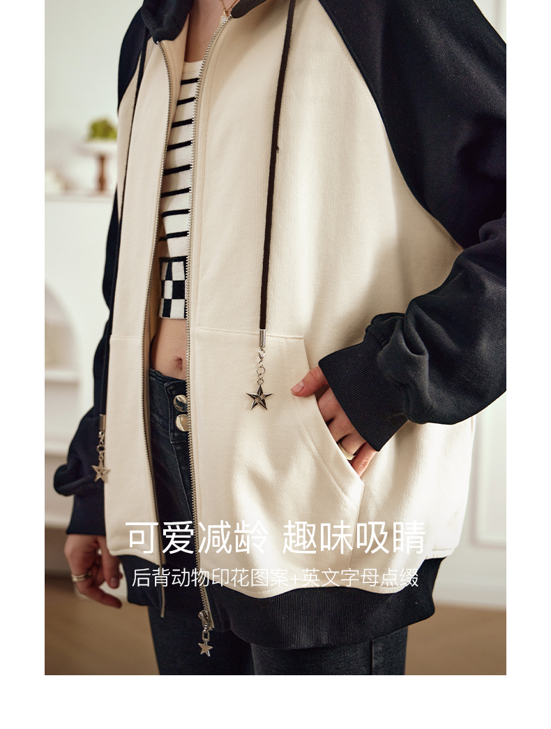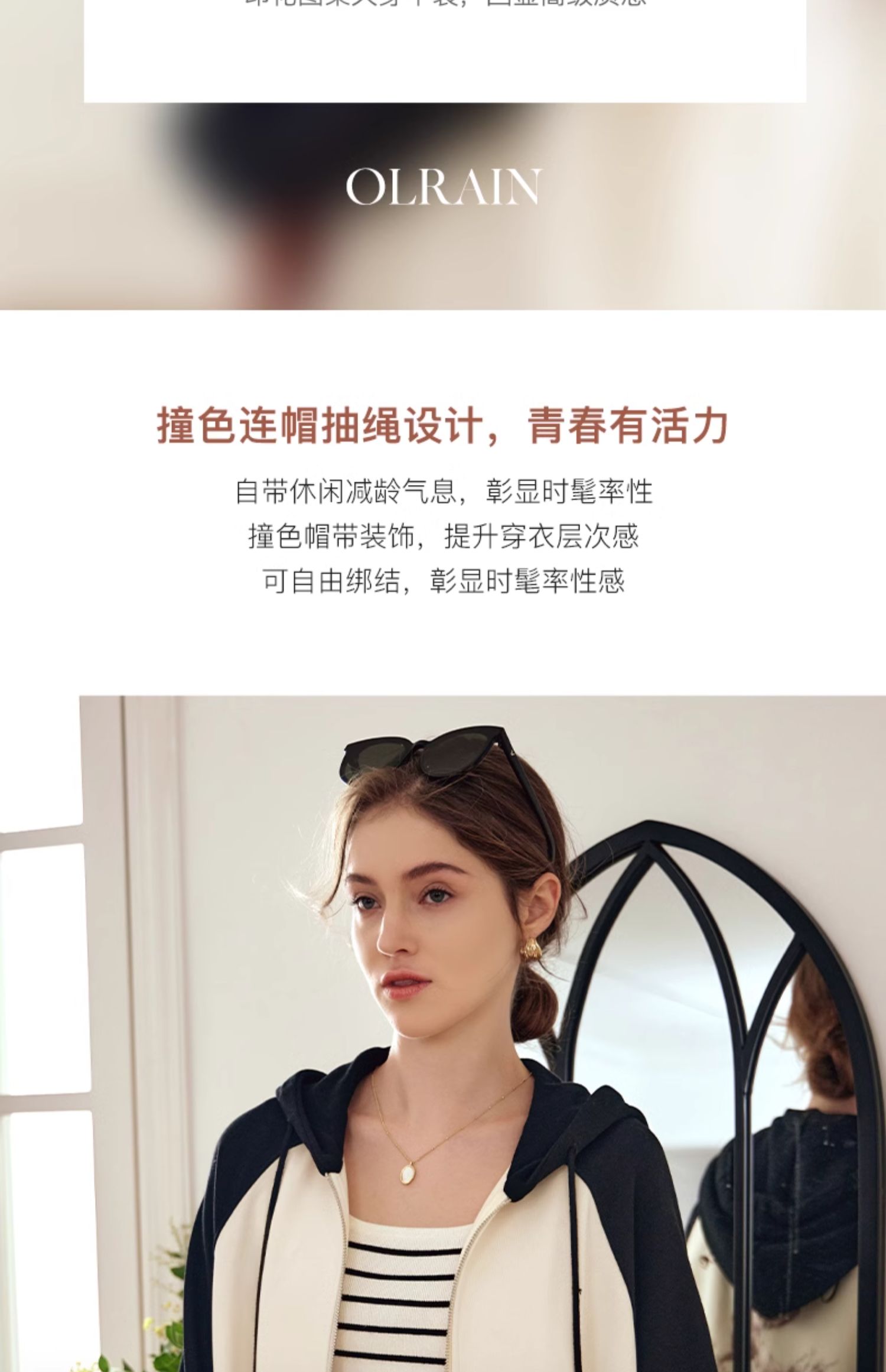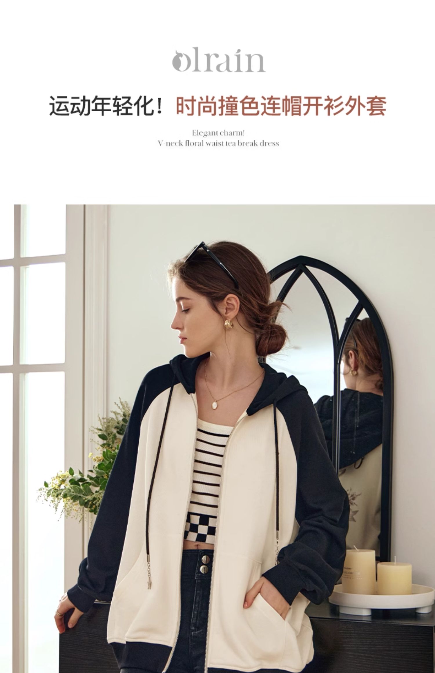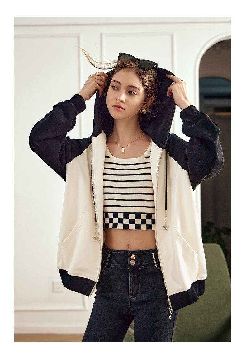 OLrain欧芮儿黑白色短外套女早春2024年新款通勤时尚撞色运动开衫
