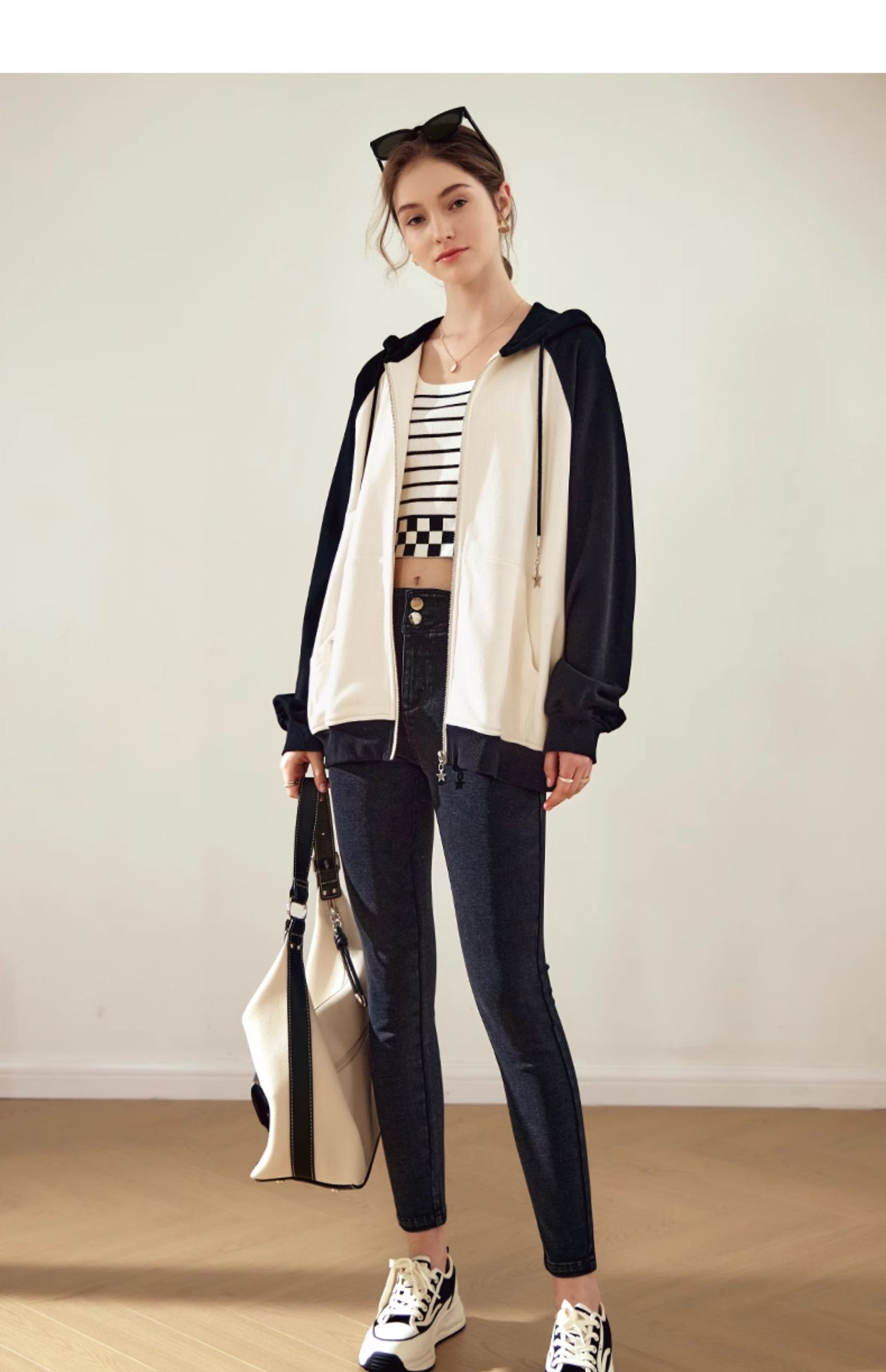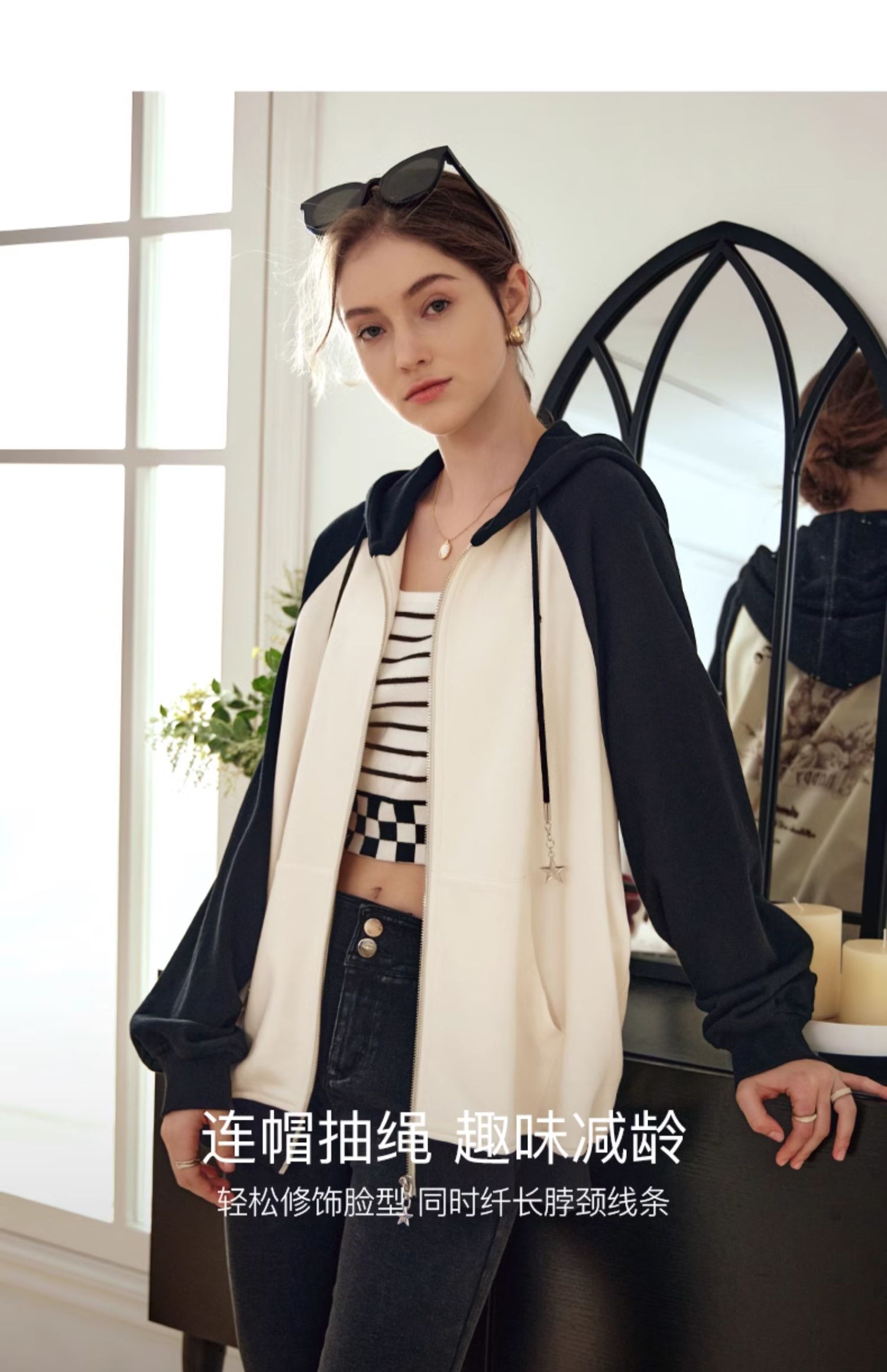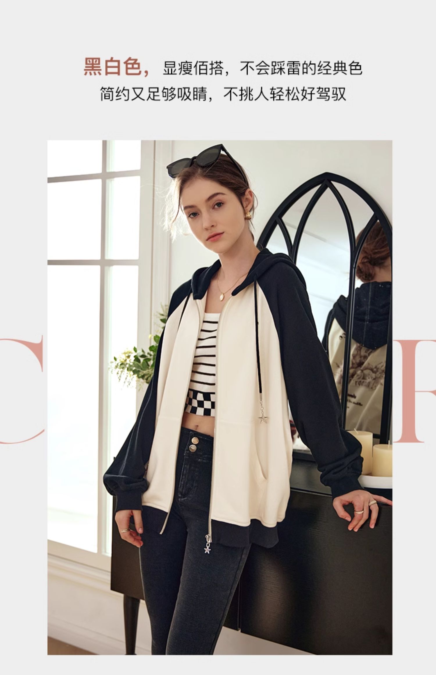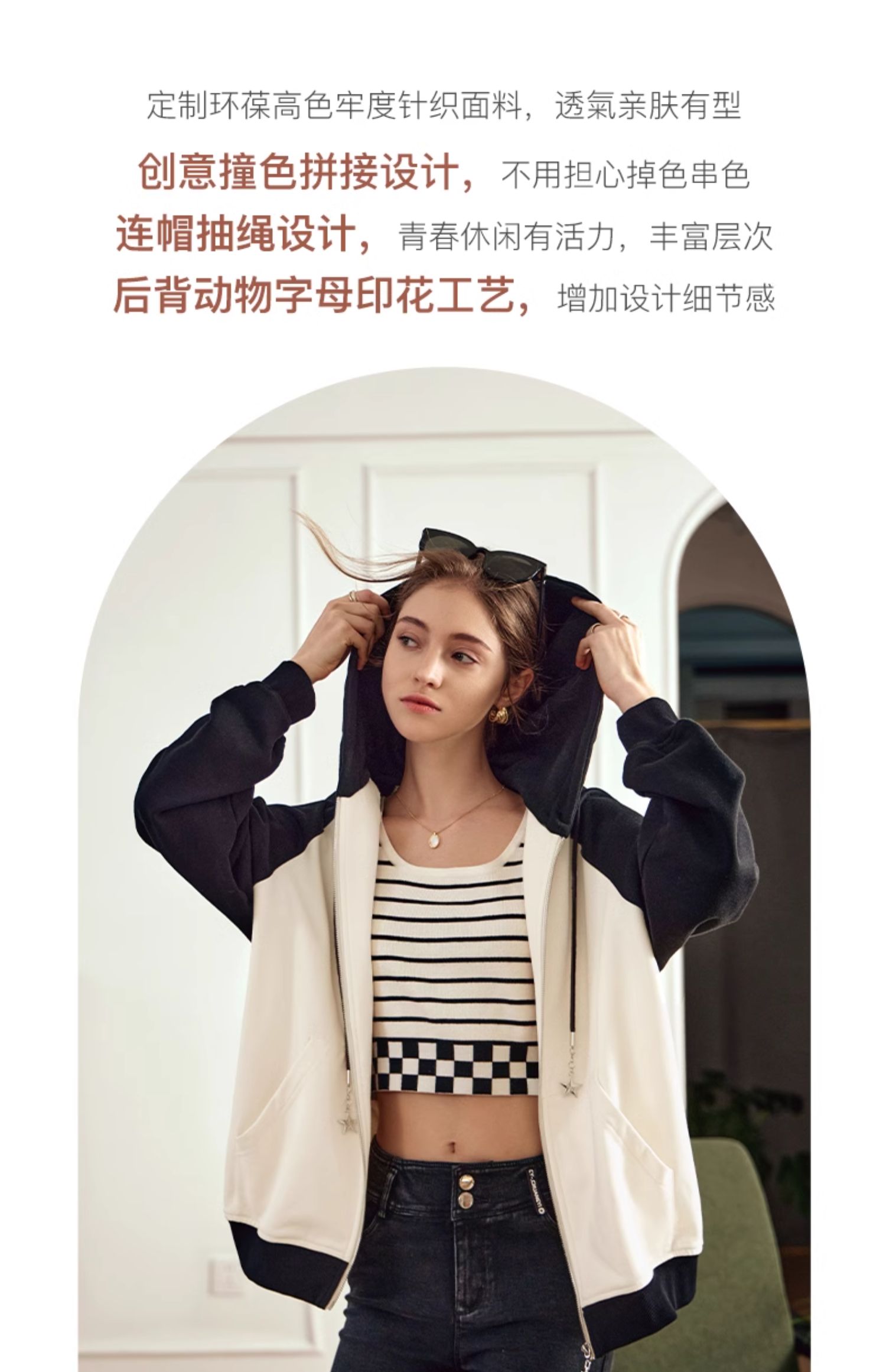 OLrain欧芮儿黑白色短外套女早春2024年新款通勤时尚撞色运动开衫