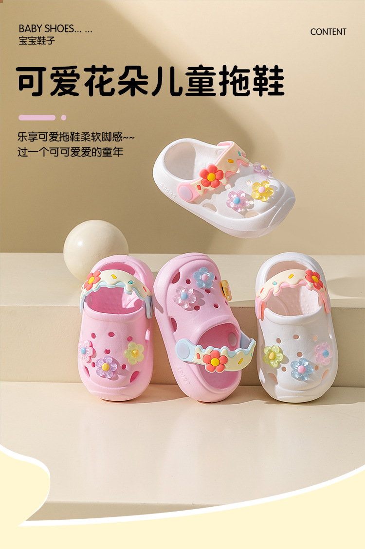 立减20【可爱儿童凉拖鞋】柔软舒适材质,穿着更舒适,保护宝宝小脚丫~夏季新款花朵软底室内软防滑幼儿女童男童洞洞鞋#异业福利