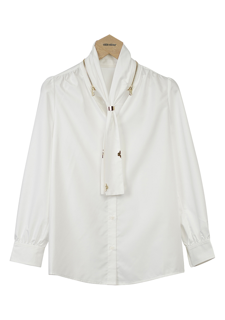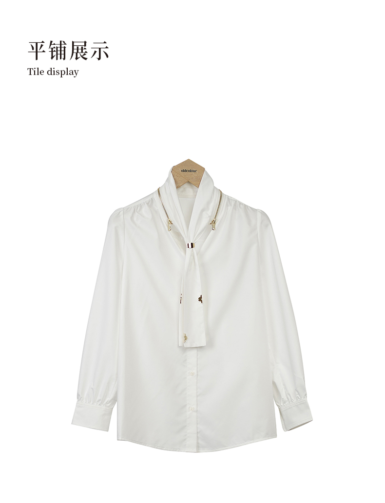 oldcolour白色简约衬衫秋季新款围巾领设计感通勤上衣女O33013367
