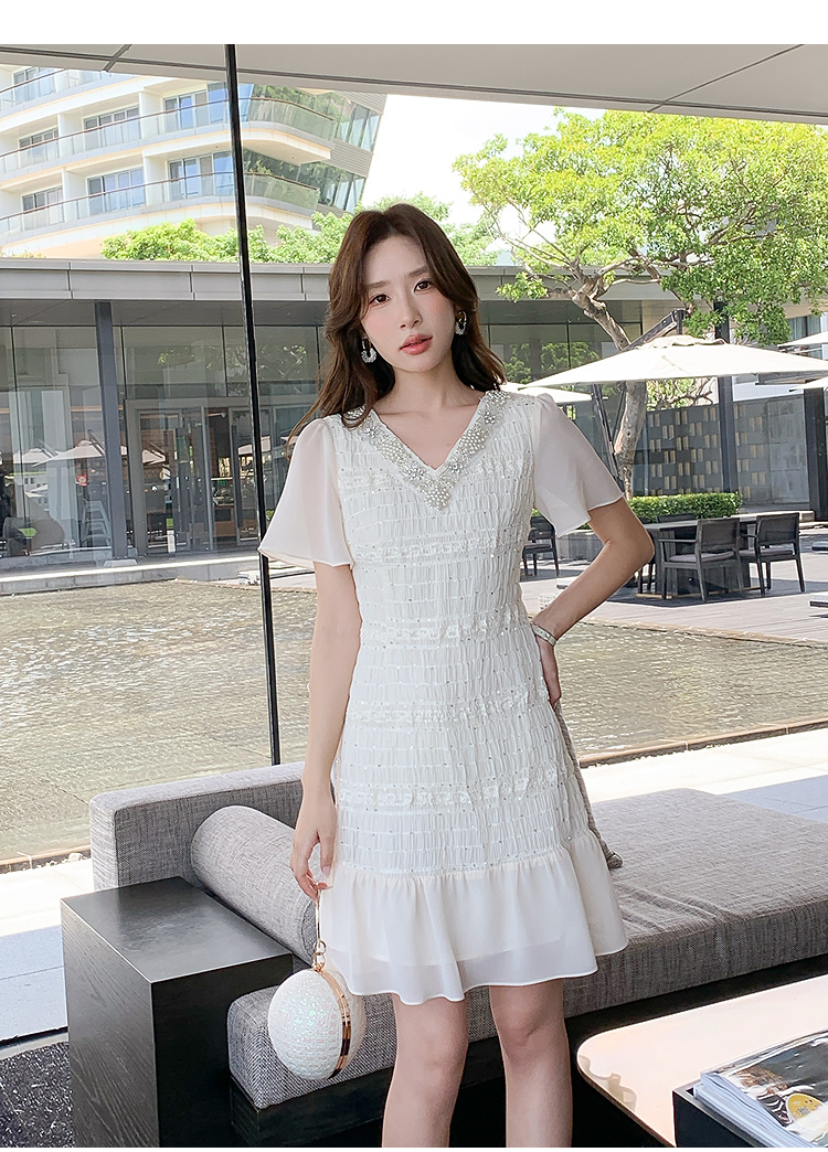 【清仓超15天不保价】奢姿大码女装2025夏季时尚V领短袖连衣裙胖妹妹气质减龄雪纺裙子9952821963