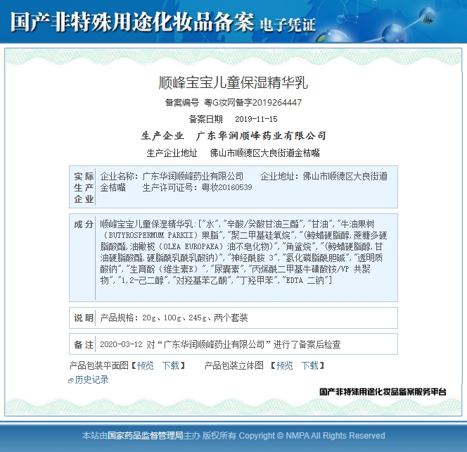 顺峰宝宝儿童保湿精华乳100g(滋润型)