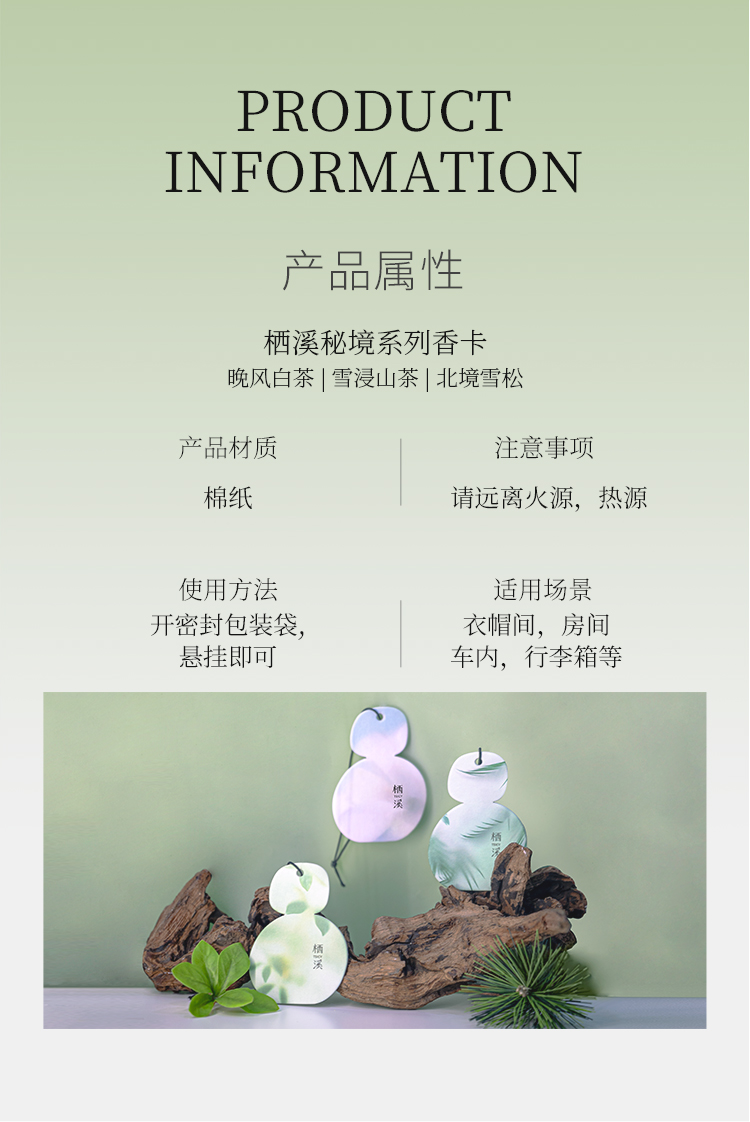 栖溪秘境香卡 家用室内挂件持久留香 雪浸山茶/晚风白茶/北境雪松 2片装