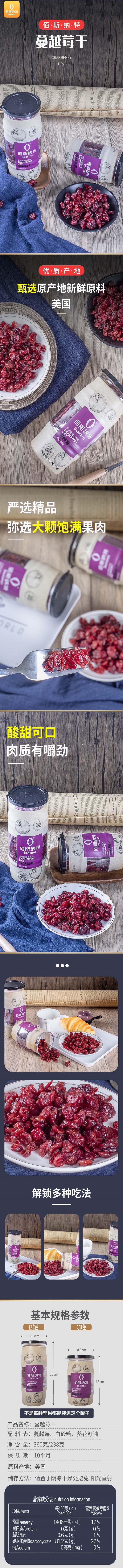 佰斯纳特蔓越莓干360g